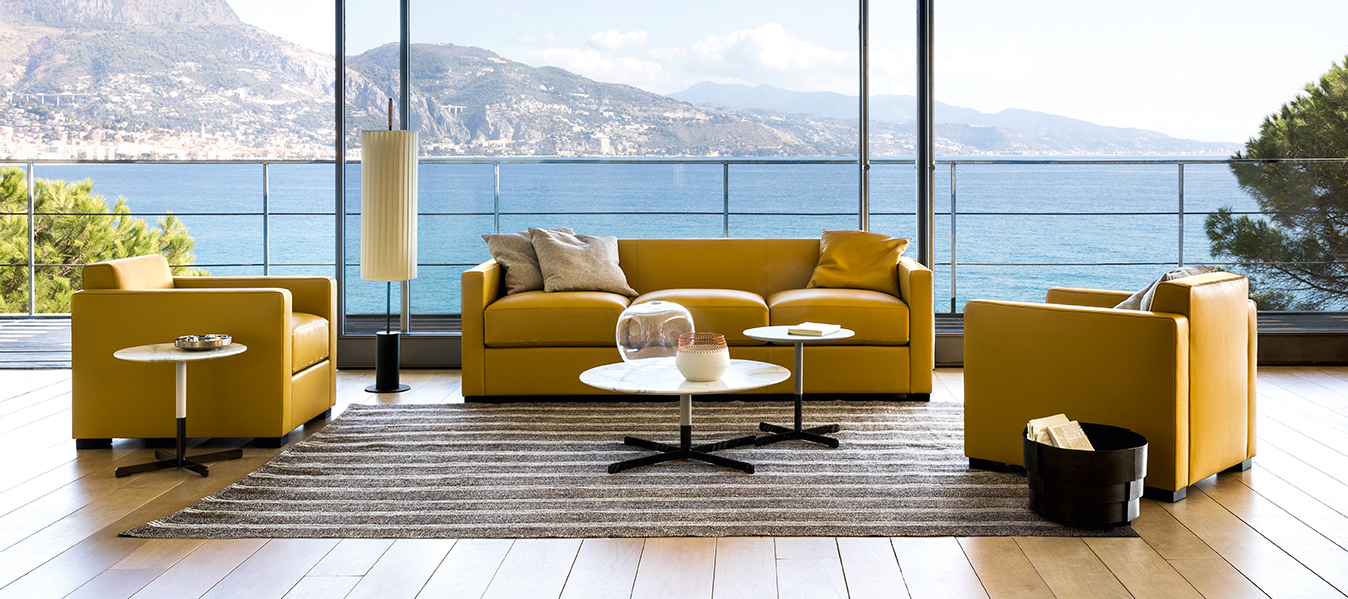 Диван и кресло Linea A отличаются исключительной точностью обивочных швов, идеально натянутых и выверенных в сочетании с прочным каркасом из массива бука и берёзовой фанеры. Особое внимание уделено внутренним деталям, таким как зигзагообразные пружины сиденья и набивка подушек гусиным пухом со стабилизирующей вставкой из пенополиуретана. Обивка доступна в коже Pelle Frau® или ткани, а также в комбинации кожи Pelle Frau® и кожи пони для спинки и подушек сиденья. Ножки из бука с морилкой под венге.