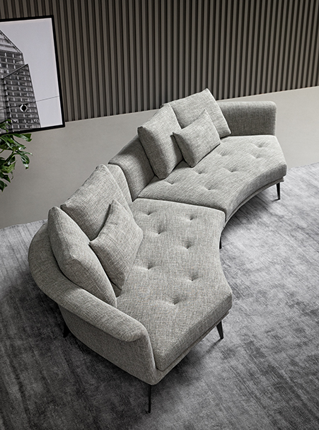 Lovy — современный диван с полукруглой формой, который идеально подходит для бесед. Его уникальная форма спинки позволяет использовать его в центре комнаты. Модульный дизайн позволяет адаптировать диван к пространству с помощью различных элементов. Каркас обтянут съемным чехлом из ткани, металлическое основание доступно в разных цветах. Коллекция включает модели с высокой и низкой спинкой, стеганый вариант, кресло и пуф, обеспечивая индивидуальные решения для любого интерьера.