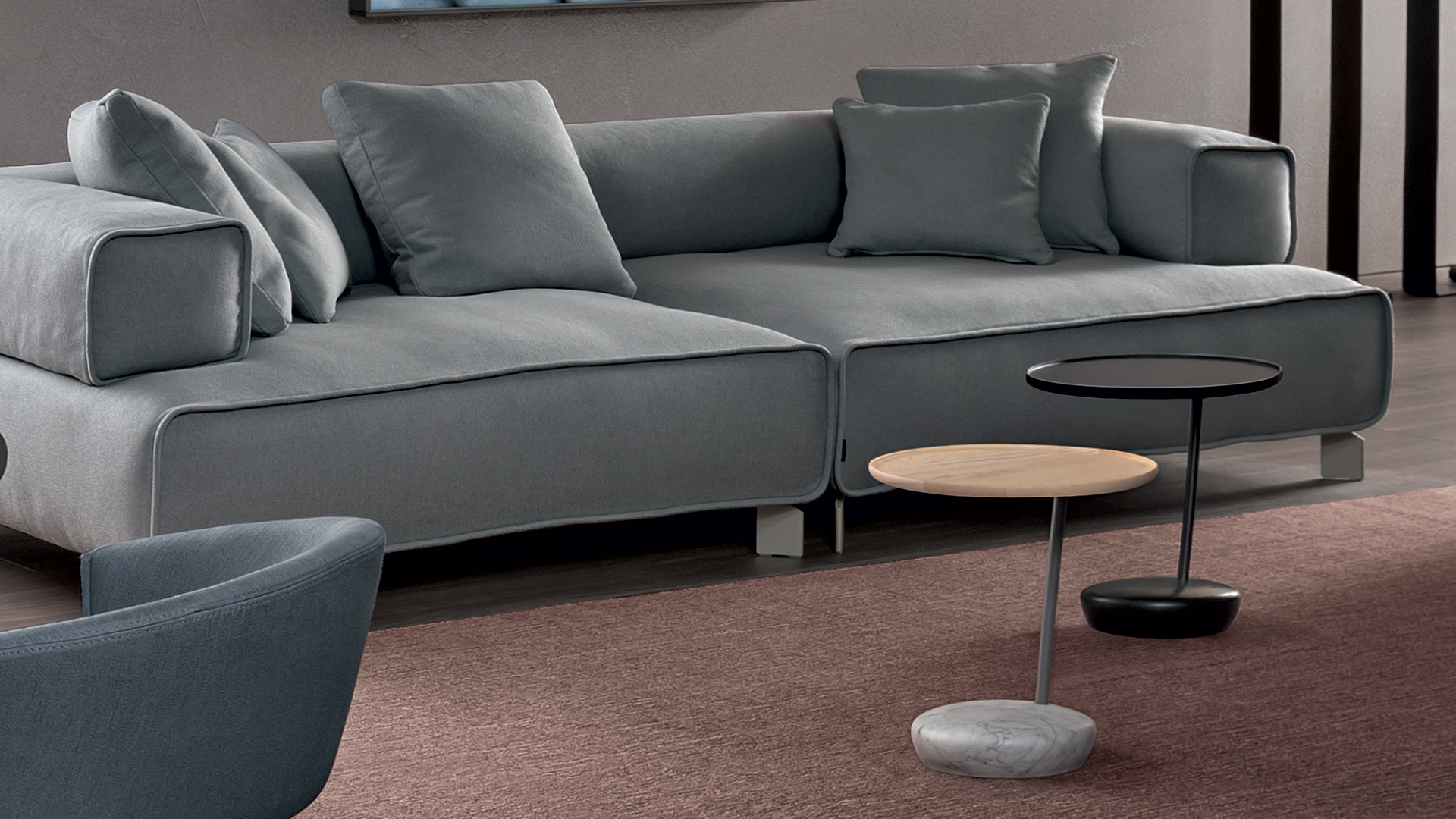 Столешница журнального столика Lupino изготовлена из ясеня и опирается на окрашенную металлическую трубку, установленную на основании из мрамора или бетона, форма которого отсылает к прочному, устойчивому камню. Финальный облик изделия представляет собой асимметричное сочетание массивной базы и лёгкой, изящной верхней части с округлым диском. Контраст материалов придаёт столику утончённую элегантность и выразительность.