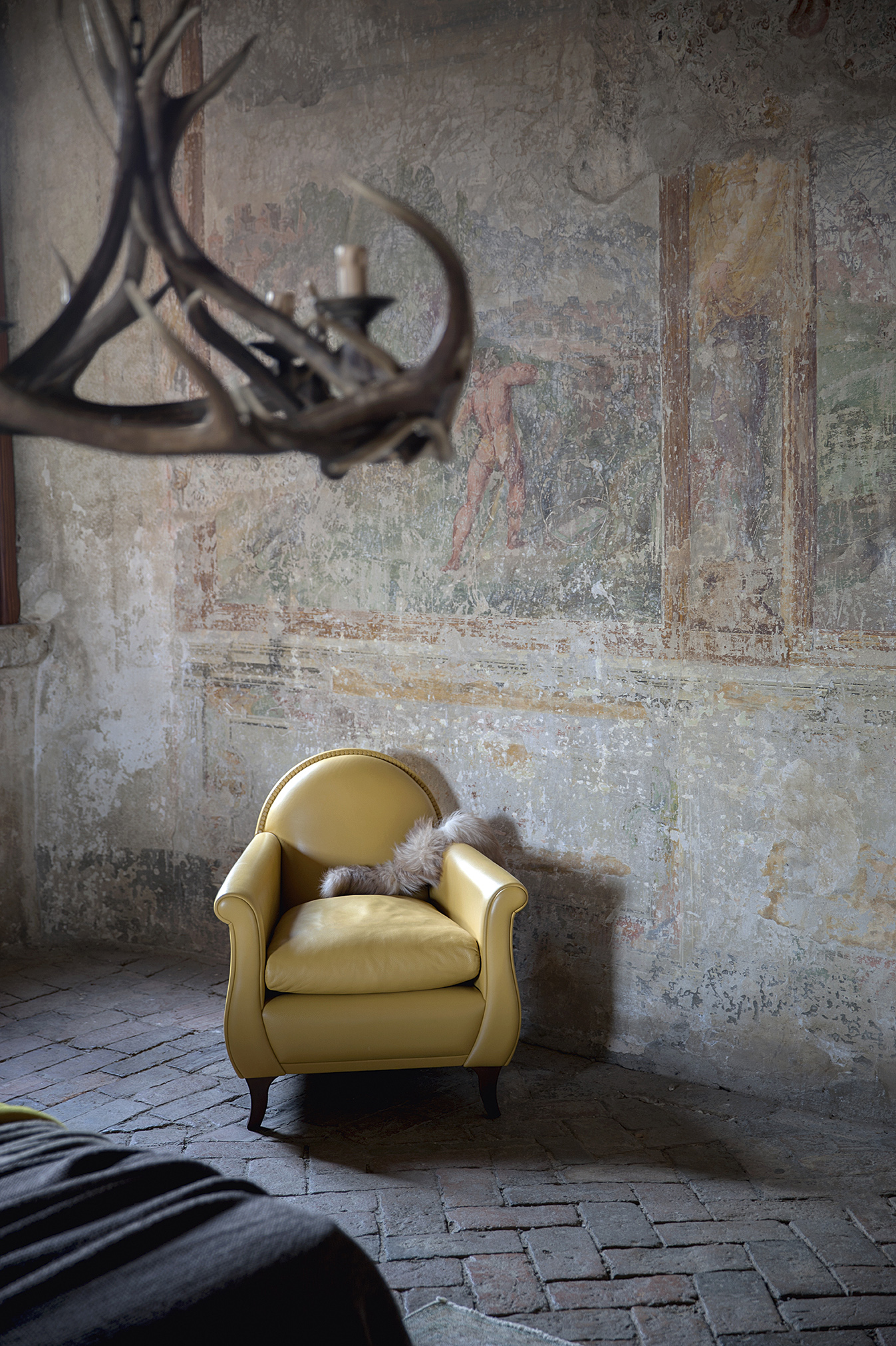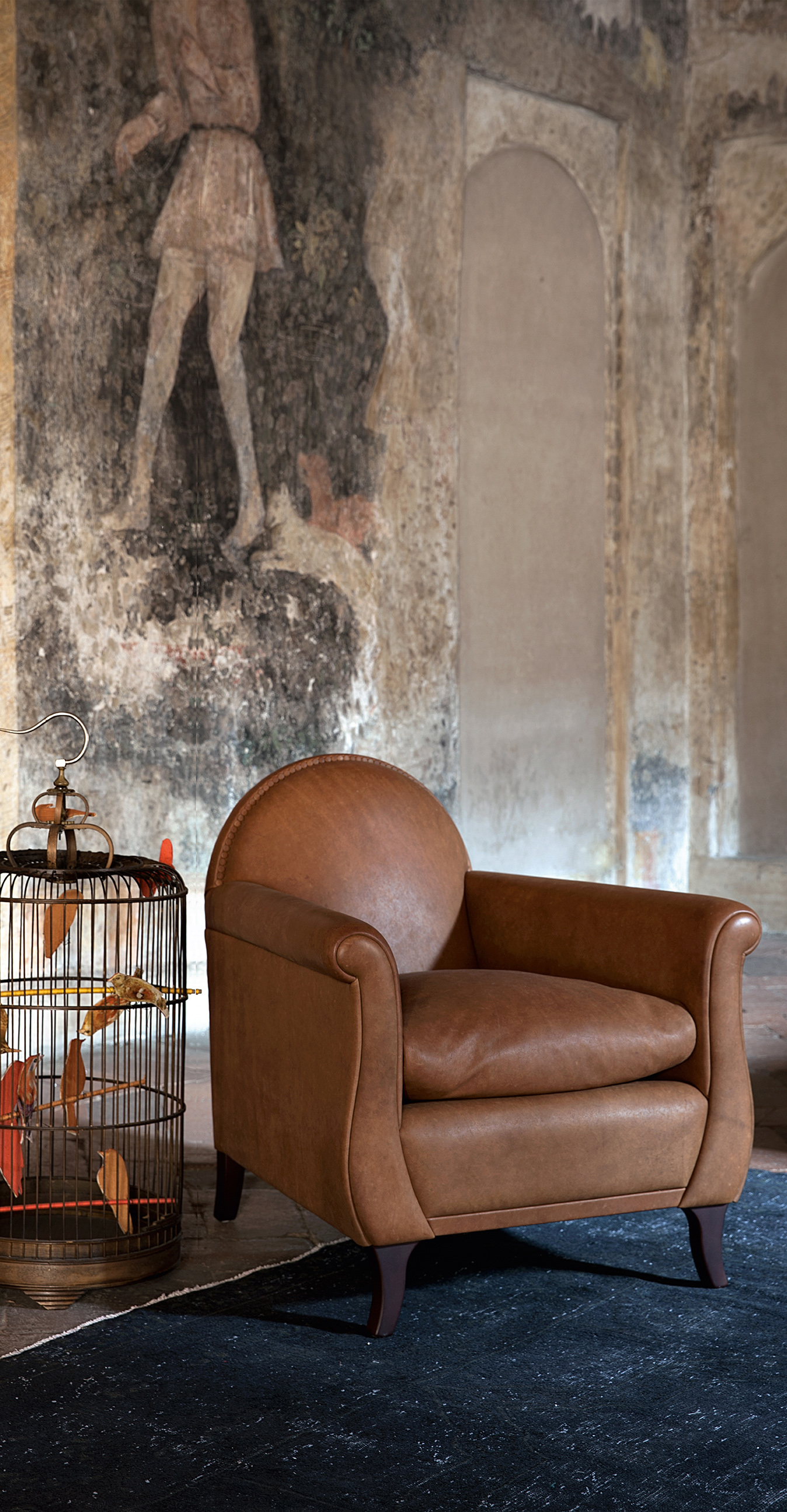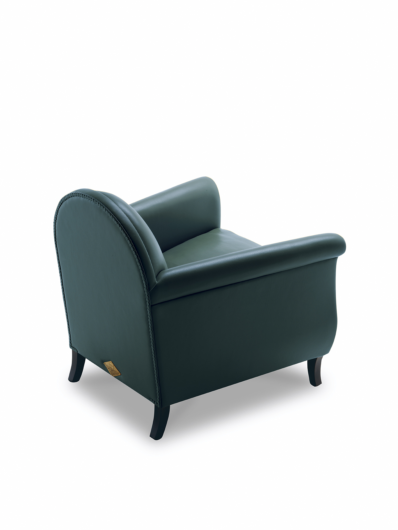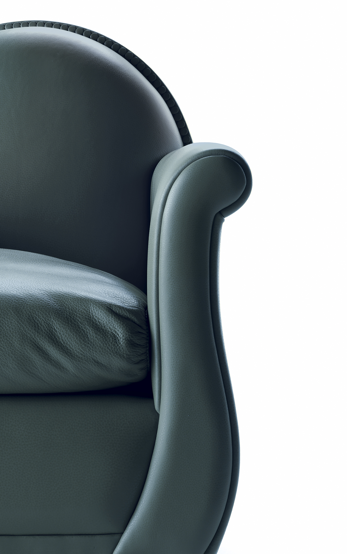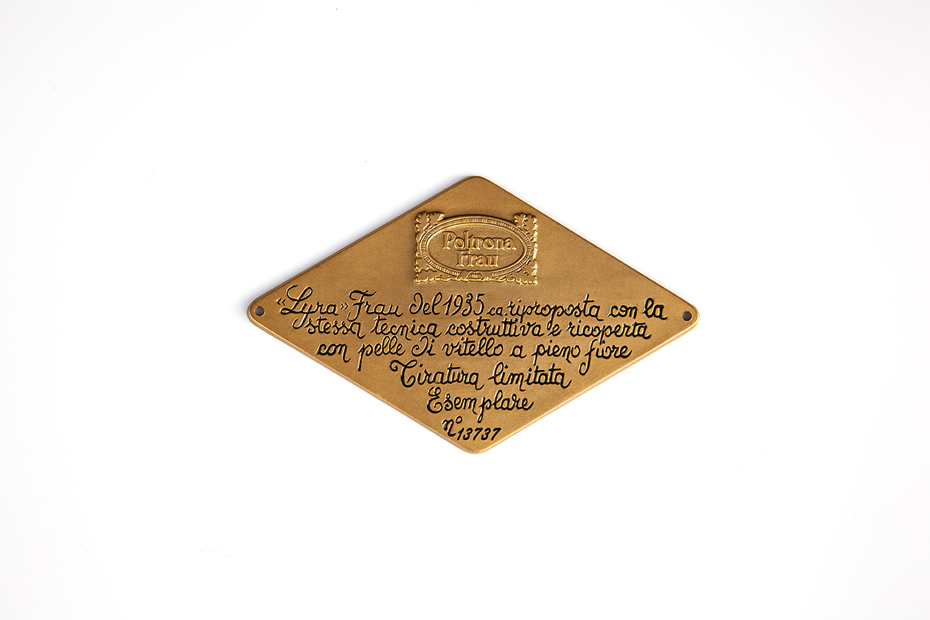 Несущая конструкция кресла Lyra изготовлена из выдержанного бука. Пружинная система сиденья и спинки состоит из стальных биконических пружин, связанных вручную и закрепленных на джутовых ремнях. Наполнитель выполнен из прорезиненного конского волоса, а подушка сиденья — из мягкого гусиного пуха. Дополнительная поясничная подушка, набитая гусиным пухом, обеспечивает дополнительный комфорт. Кресло Lyra обито кожей Pelle Frau® или тканью и украшено кожаными штифтами в верхней части спинки и на спинке. Lyra — это пронумерованная серия с этикеткой, покрытой 24-каратным золотом.