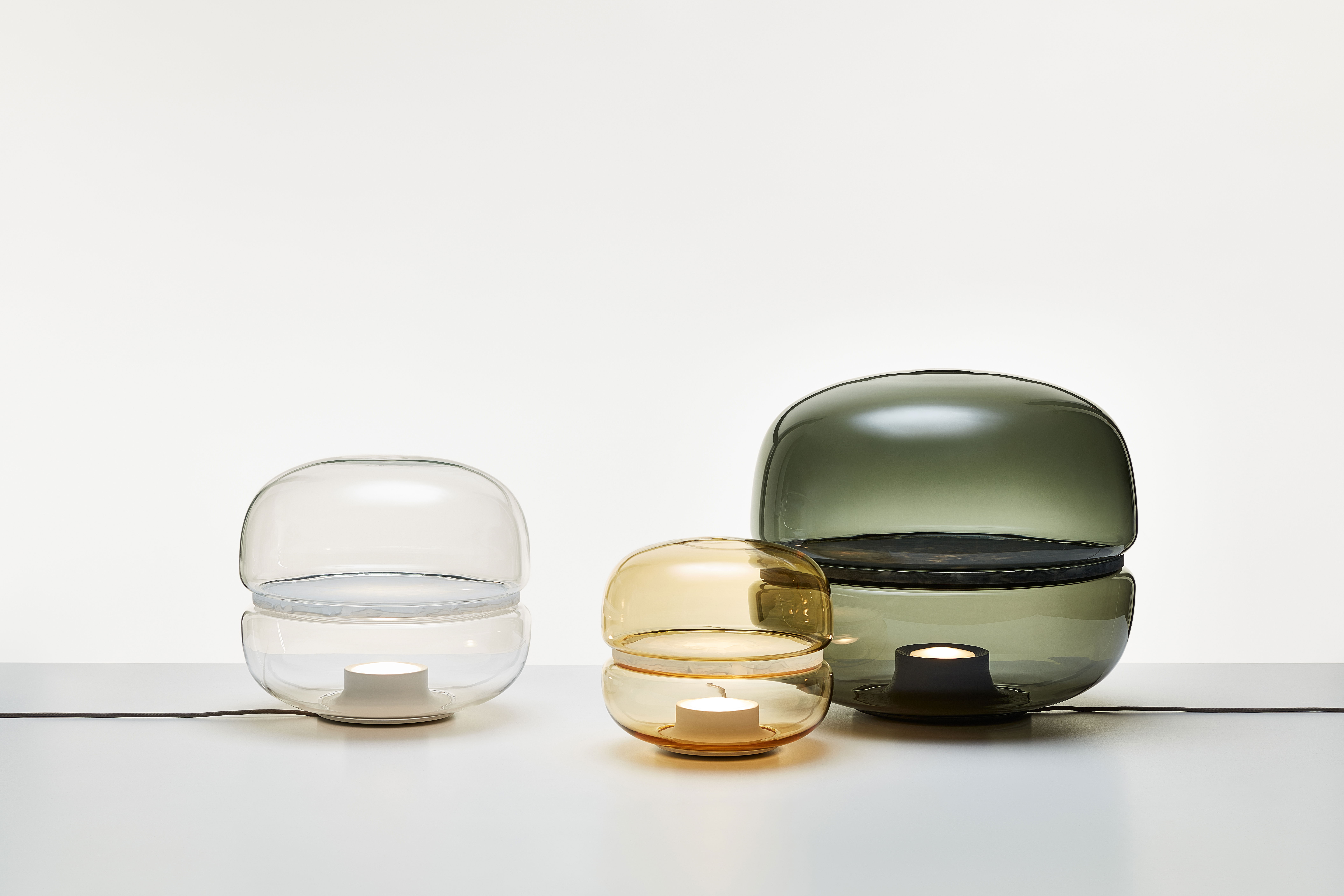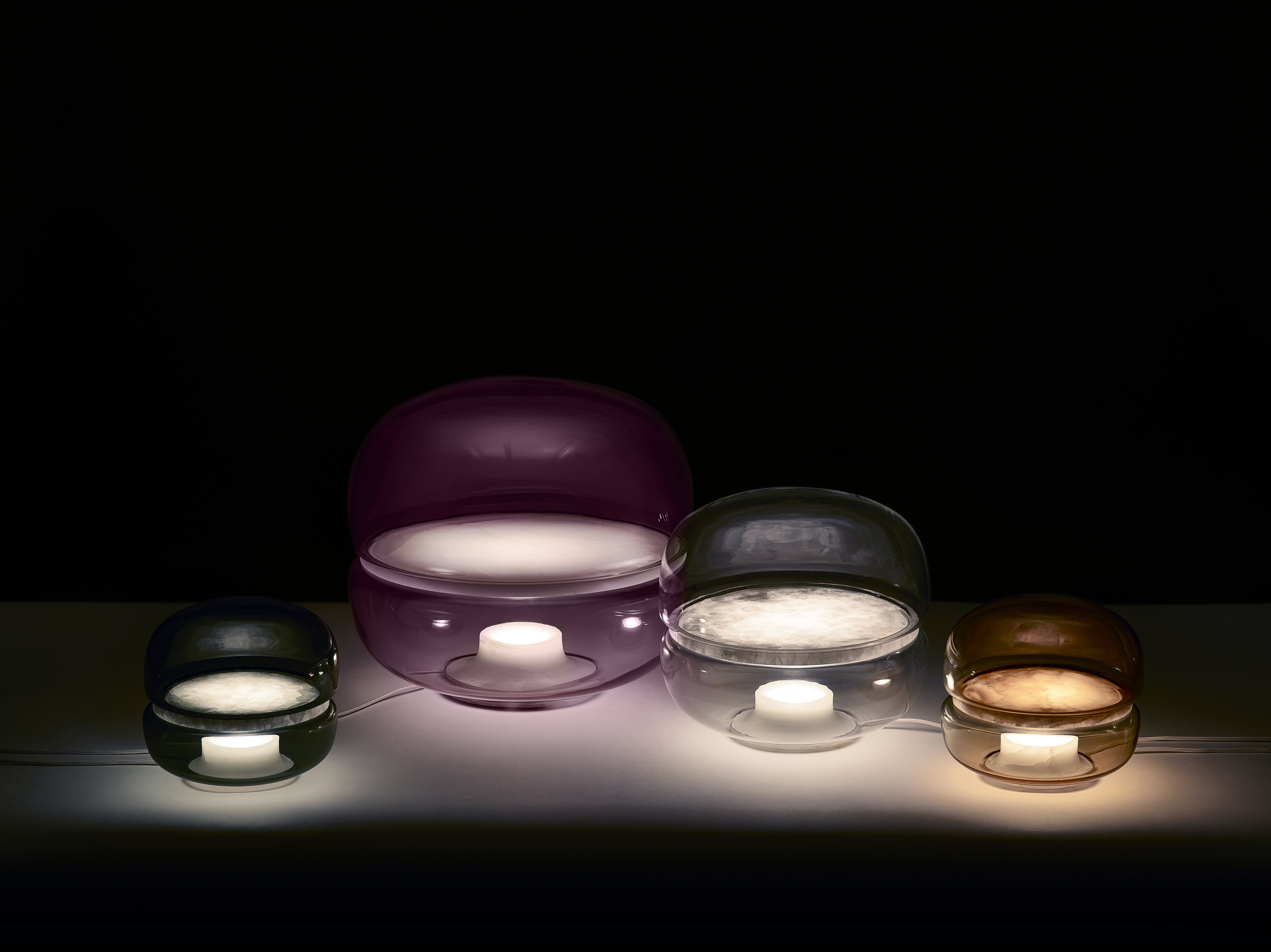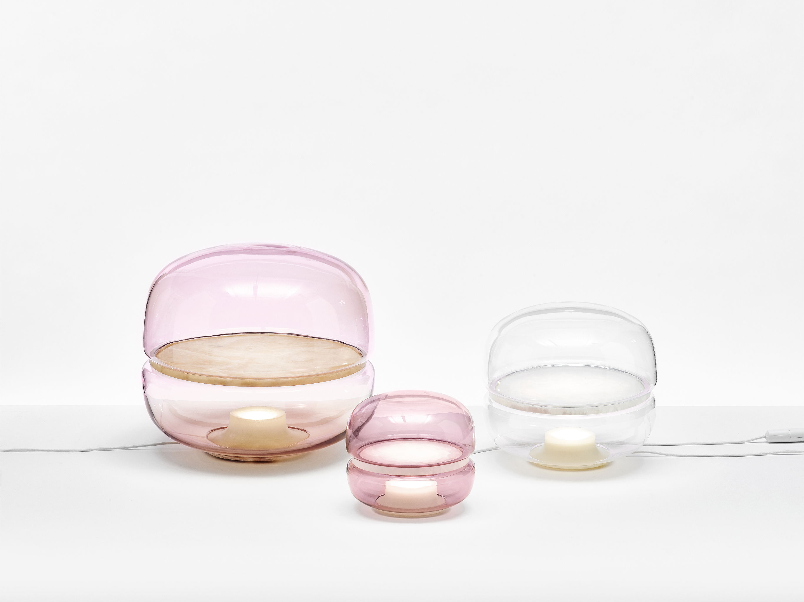 Macaron выполнен с применением традиционных техник и отражает характерную долговечную эстетику BROKIS. Коллекция включает три размера, при этом самая большая версия может использоваться как напольный светильник. Стеклянные купола предлагаются в нескольких цветах, основание может быть выполнено из белого или медового оникса. Альтернативная версия коллекции имеет центральную пластину из BROKISGLASS в сочетании с деревянным основанием.