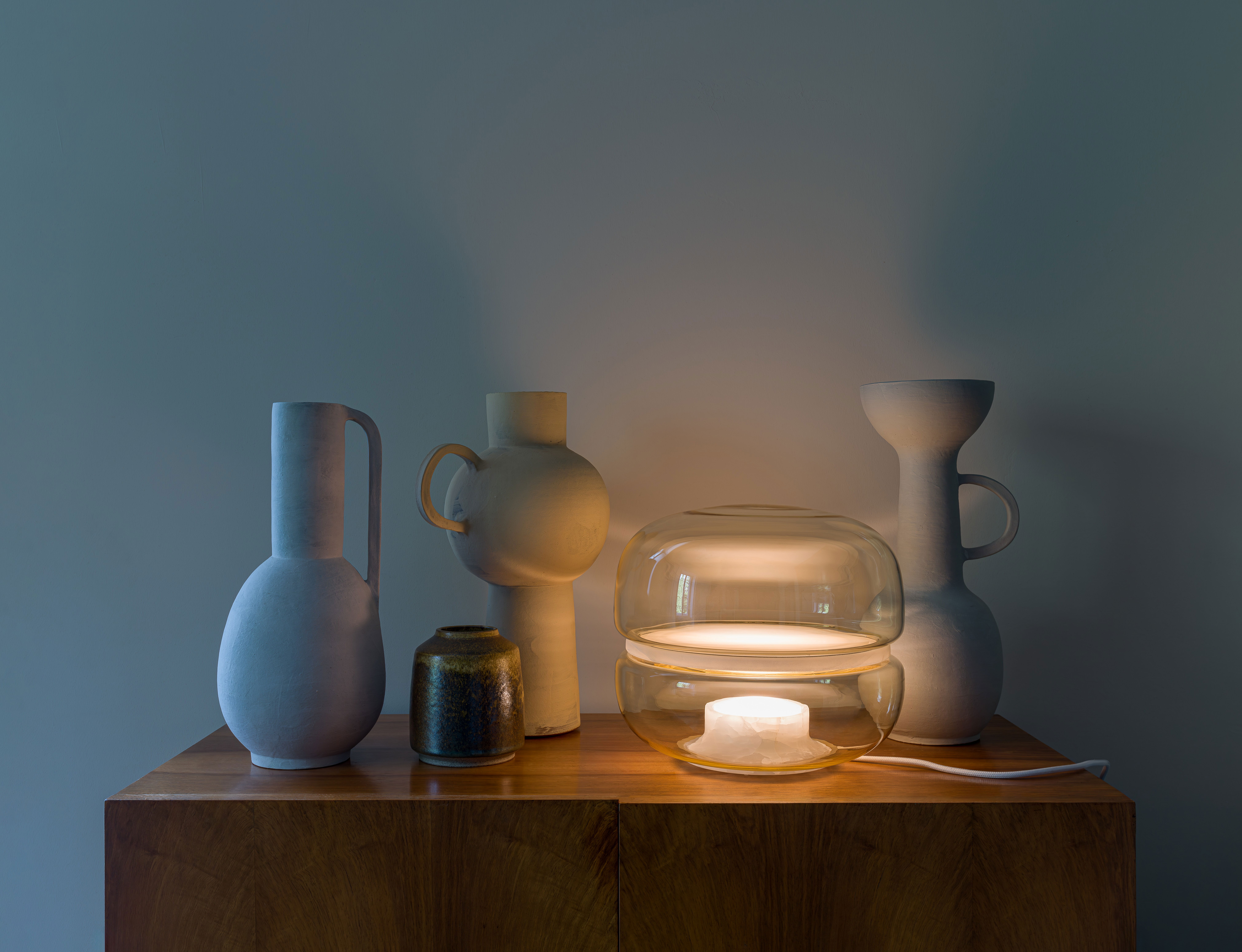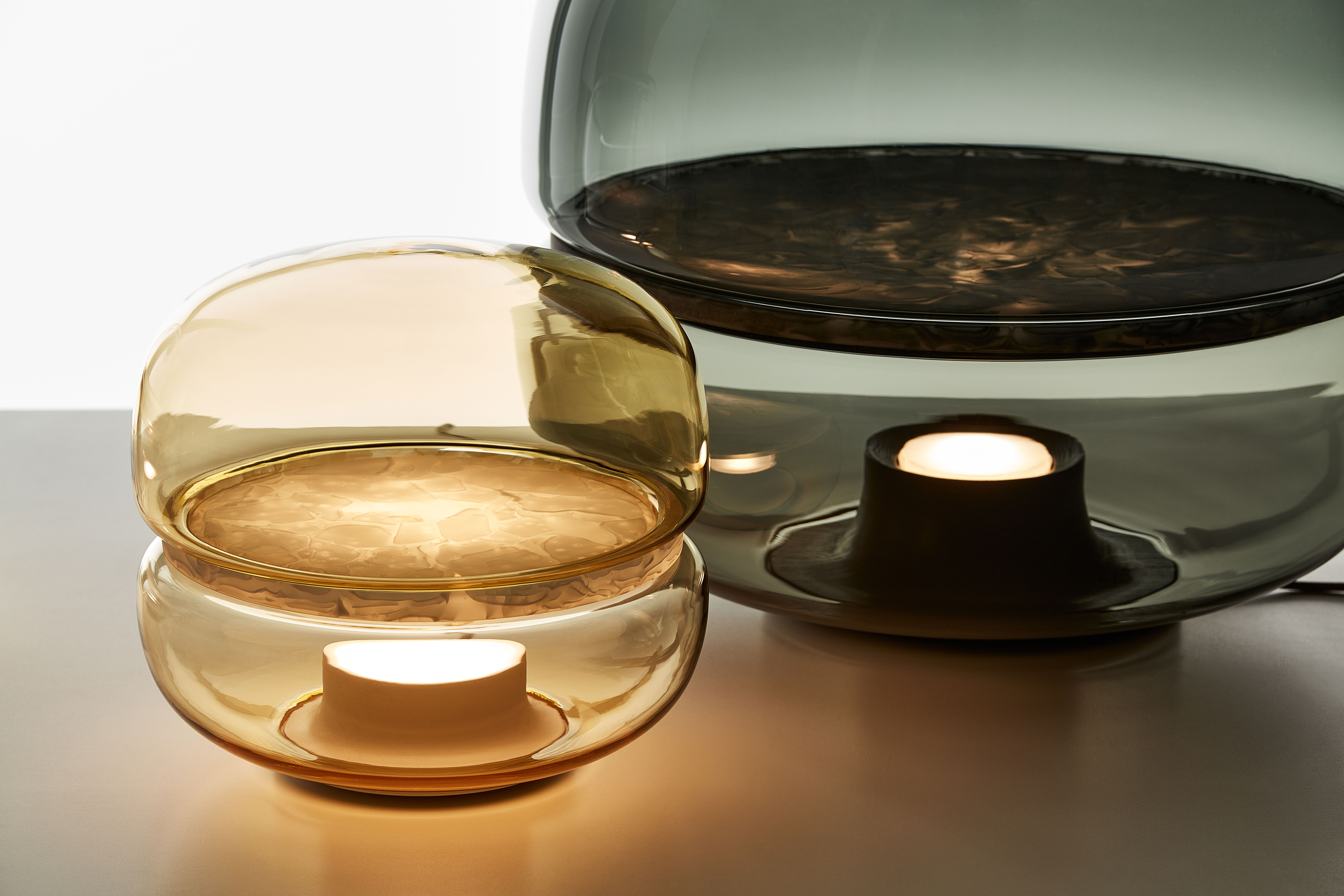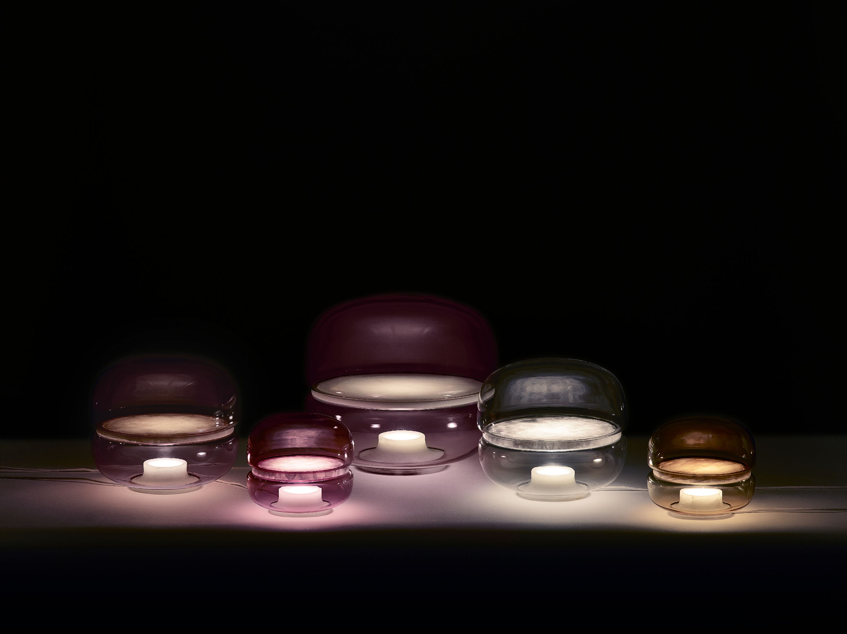 Macaron выполнен с применением традиционных техник и отражает характерную долговечную эстетику BROKIS. Коллекция включает три размера, при этом самая большая версия может использоваться как напольный светильник. Стеклянные купола предлагаются в нескольких цветах, основание может быть выполнено из белого или медового оникса. Альтернативная версия коллекции имеет центральную пластину из BROKISGLASS в сочетании с деревянным основанием.