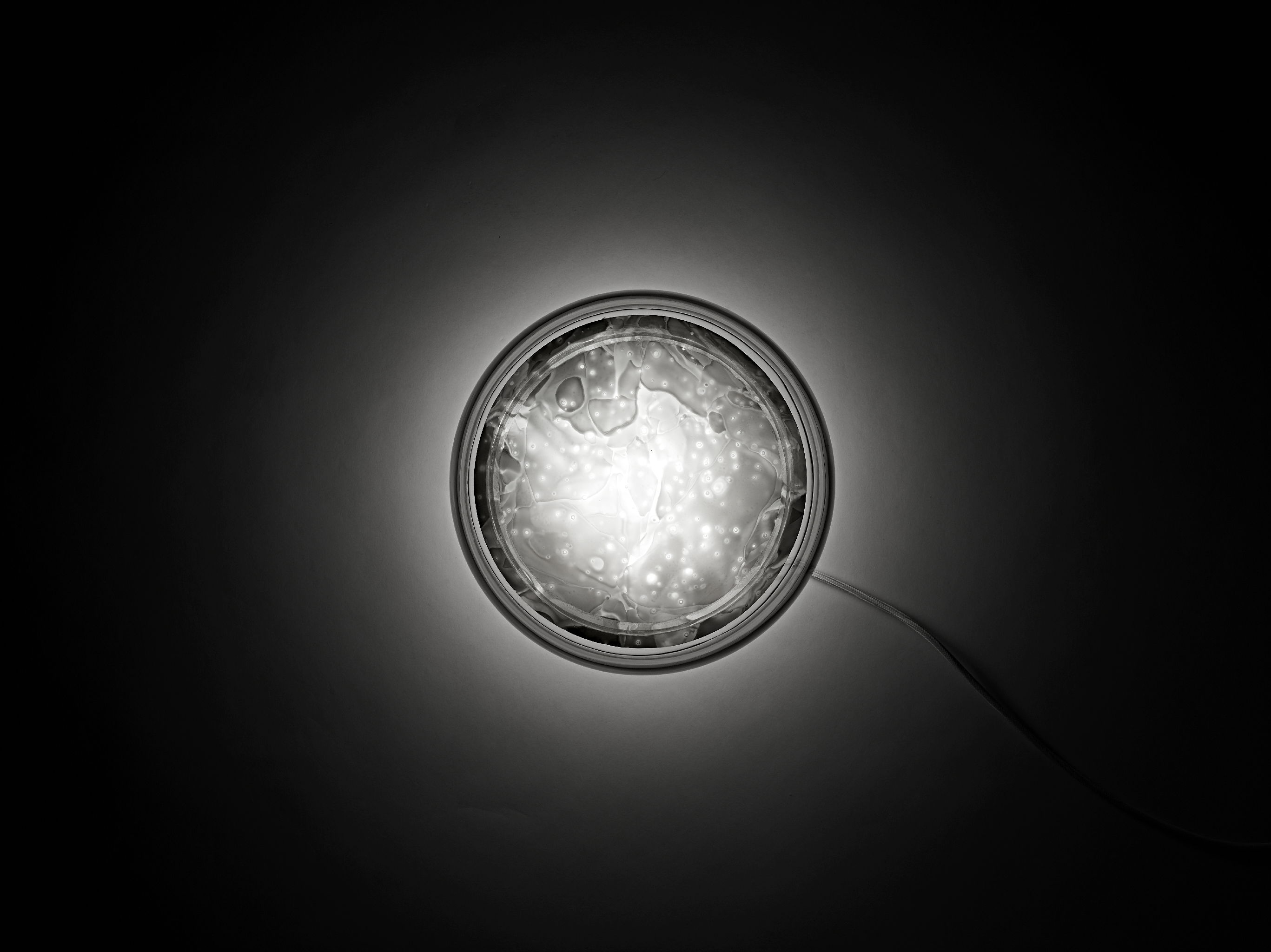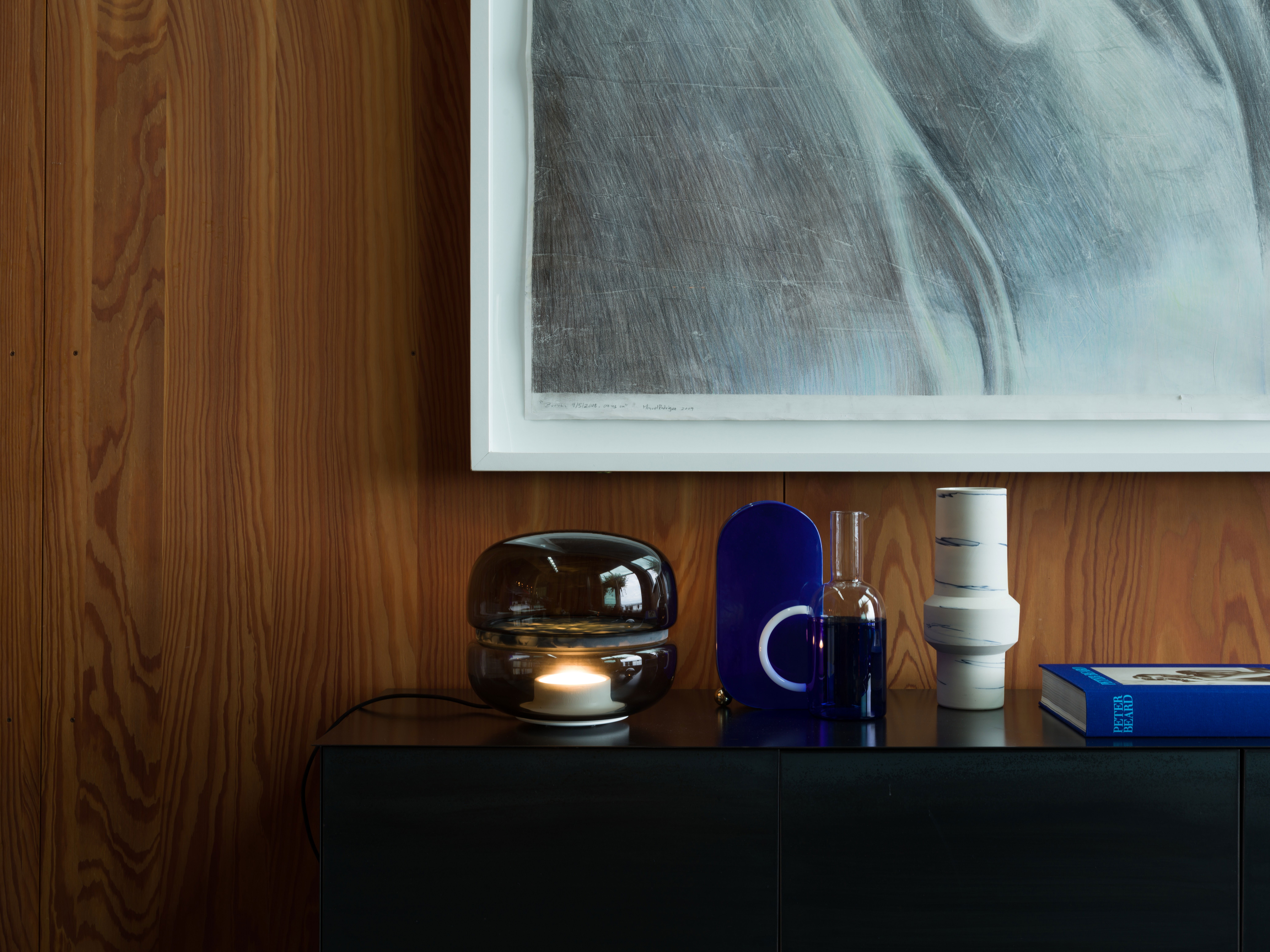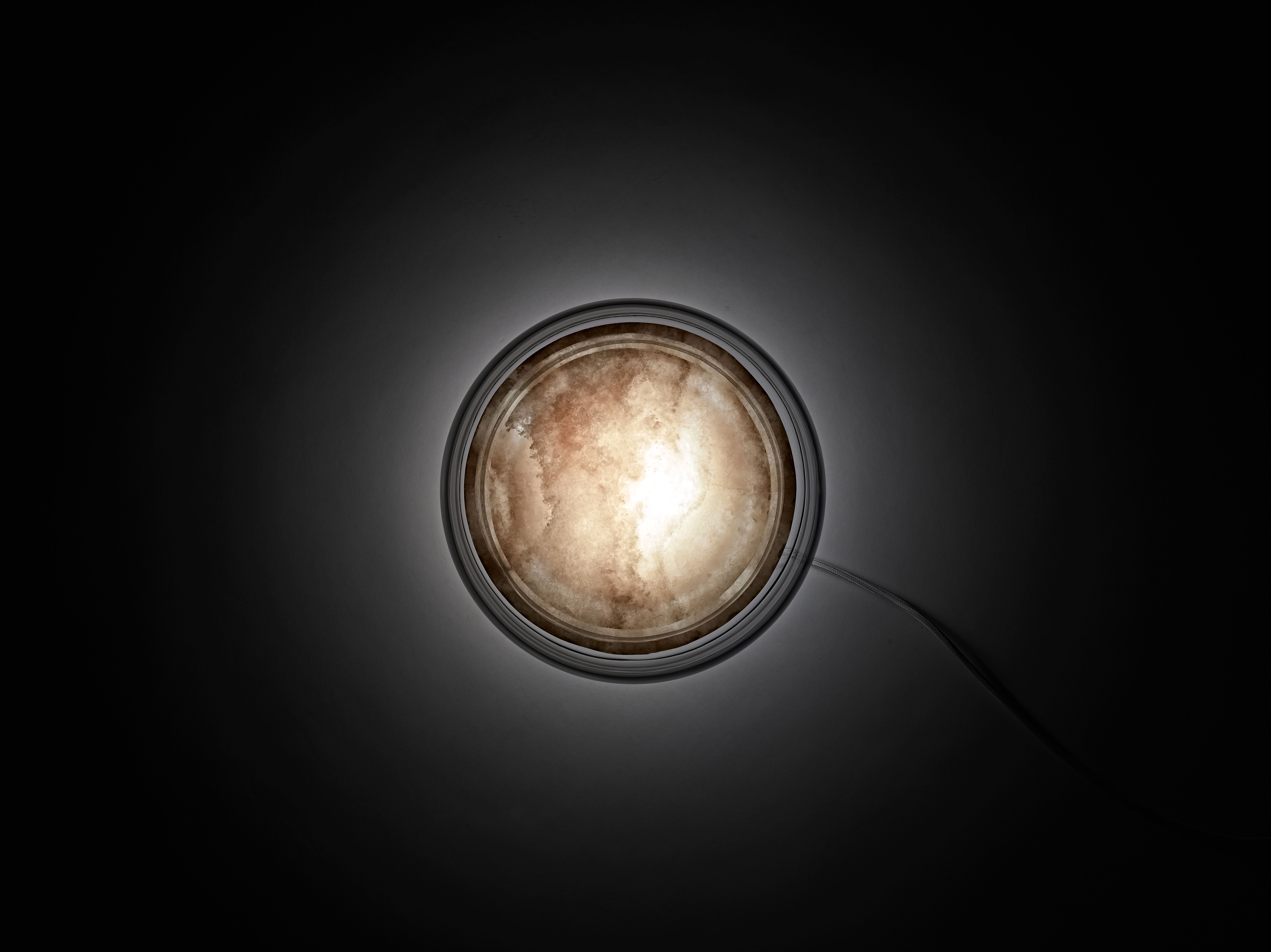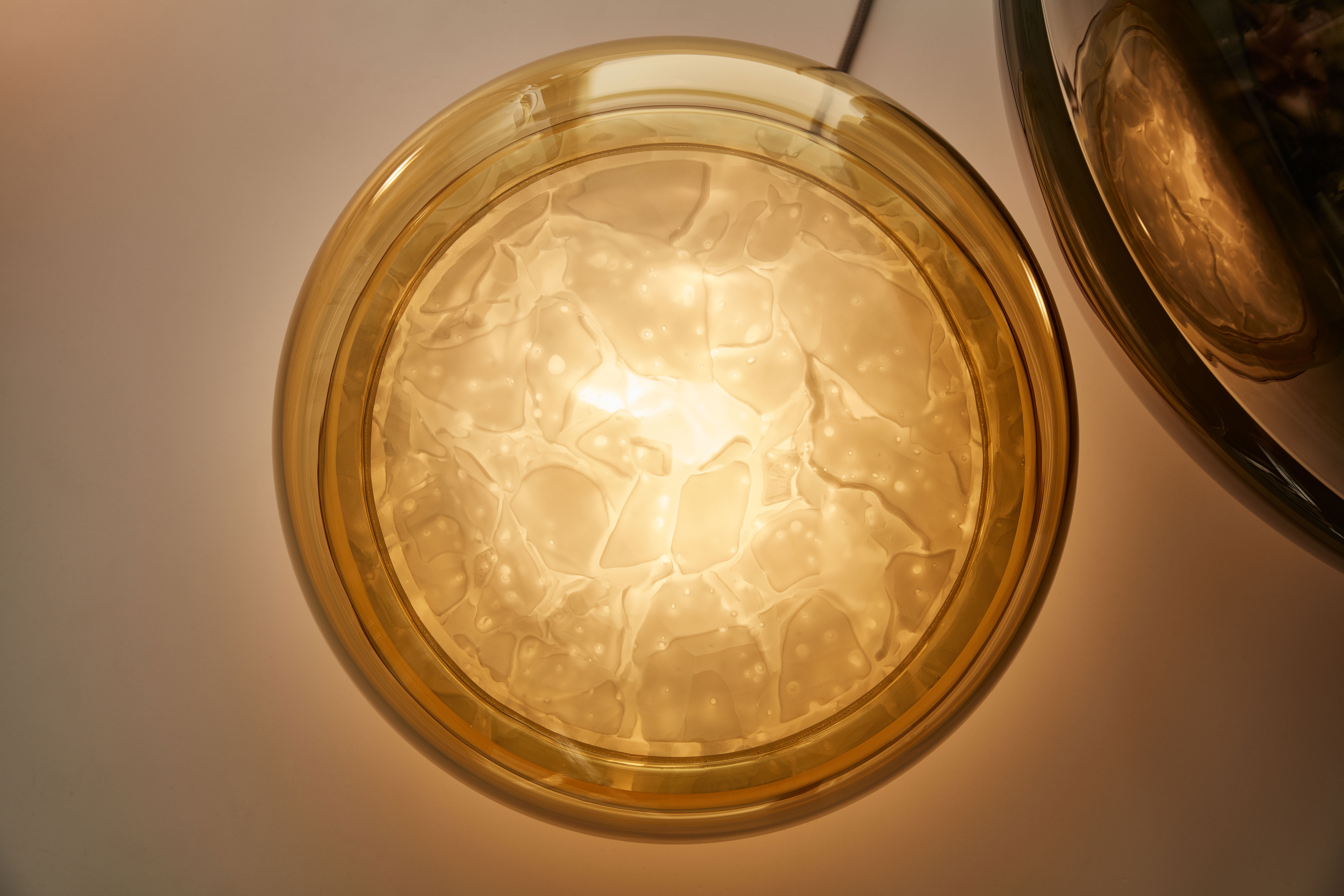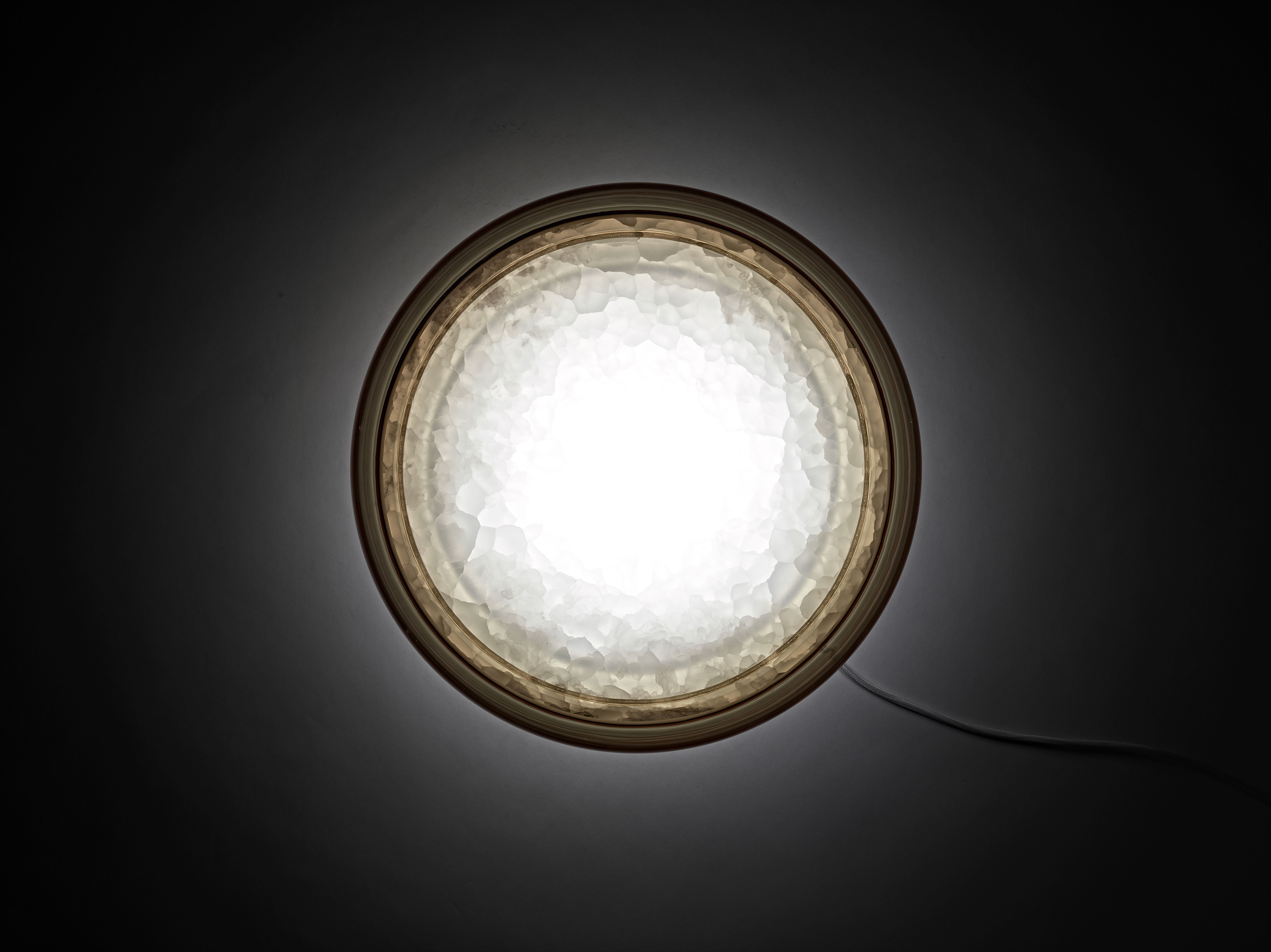 Настольный светильник Macaron воспевает красоту и сложные структуры кристаллического камня. Камень заключён между противоположными куполами из тонкого выдувного стекла, создавая эффект лунного пейзажа, парящего в собственном космосе. Световой источник излучает свет вверх от основания из оникса, подсвечивая извилистые жилки халцедона на центральной ониксовой пластине и формируя мягкий, завораживающий световой эффект.