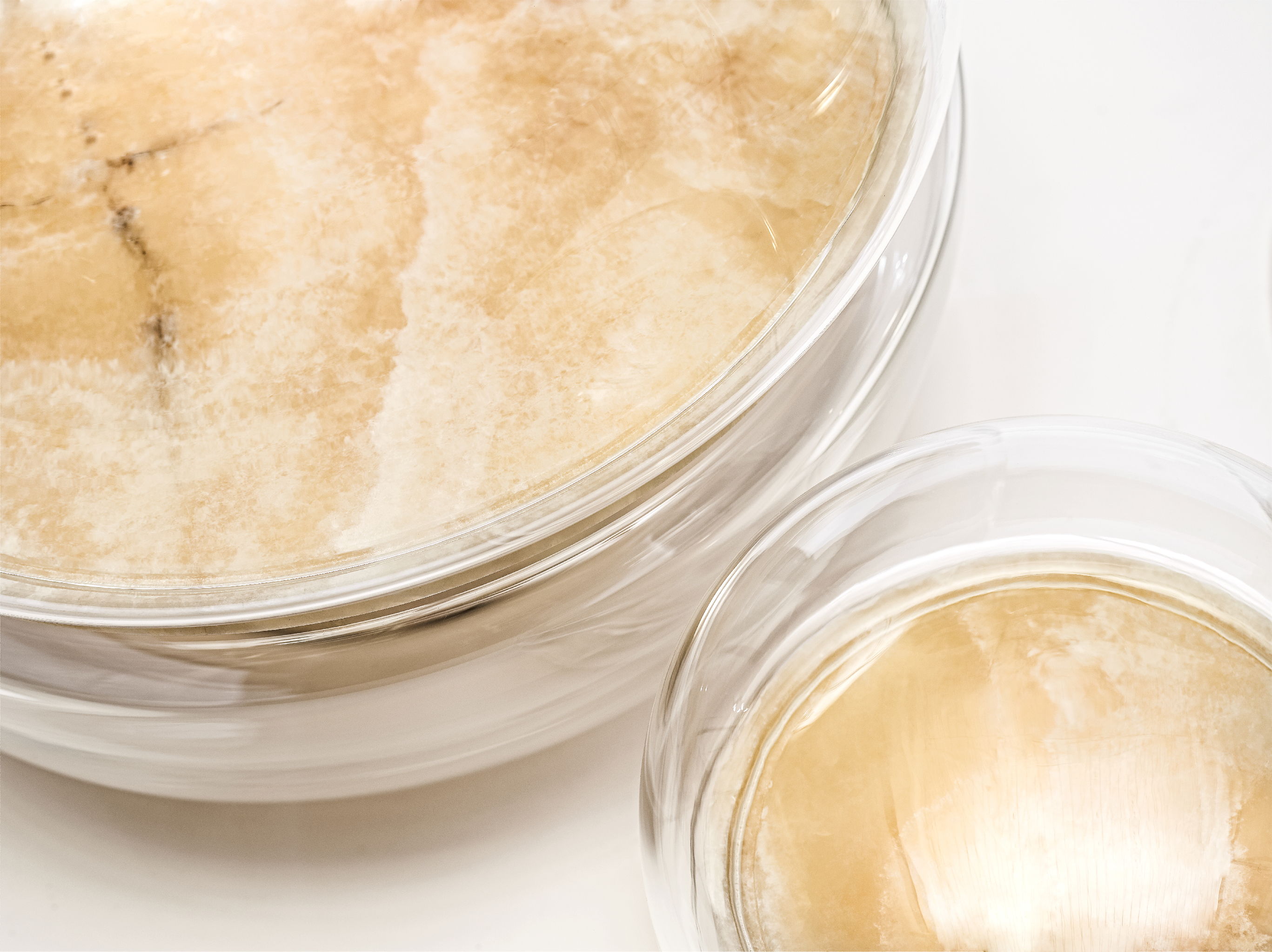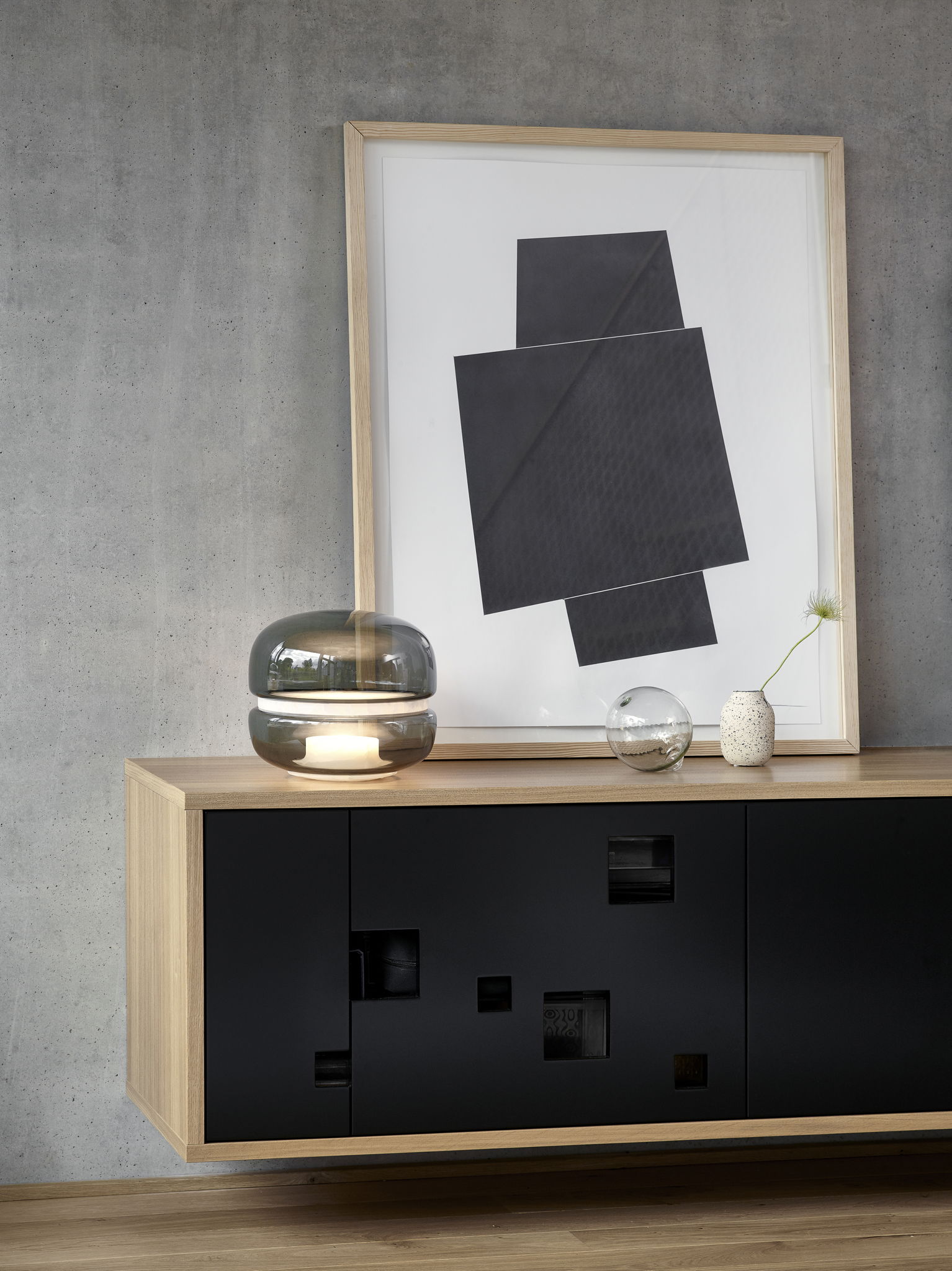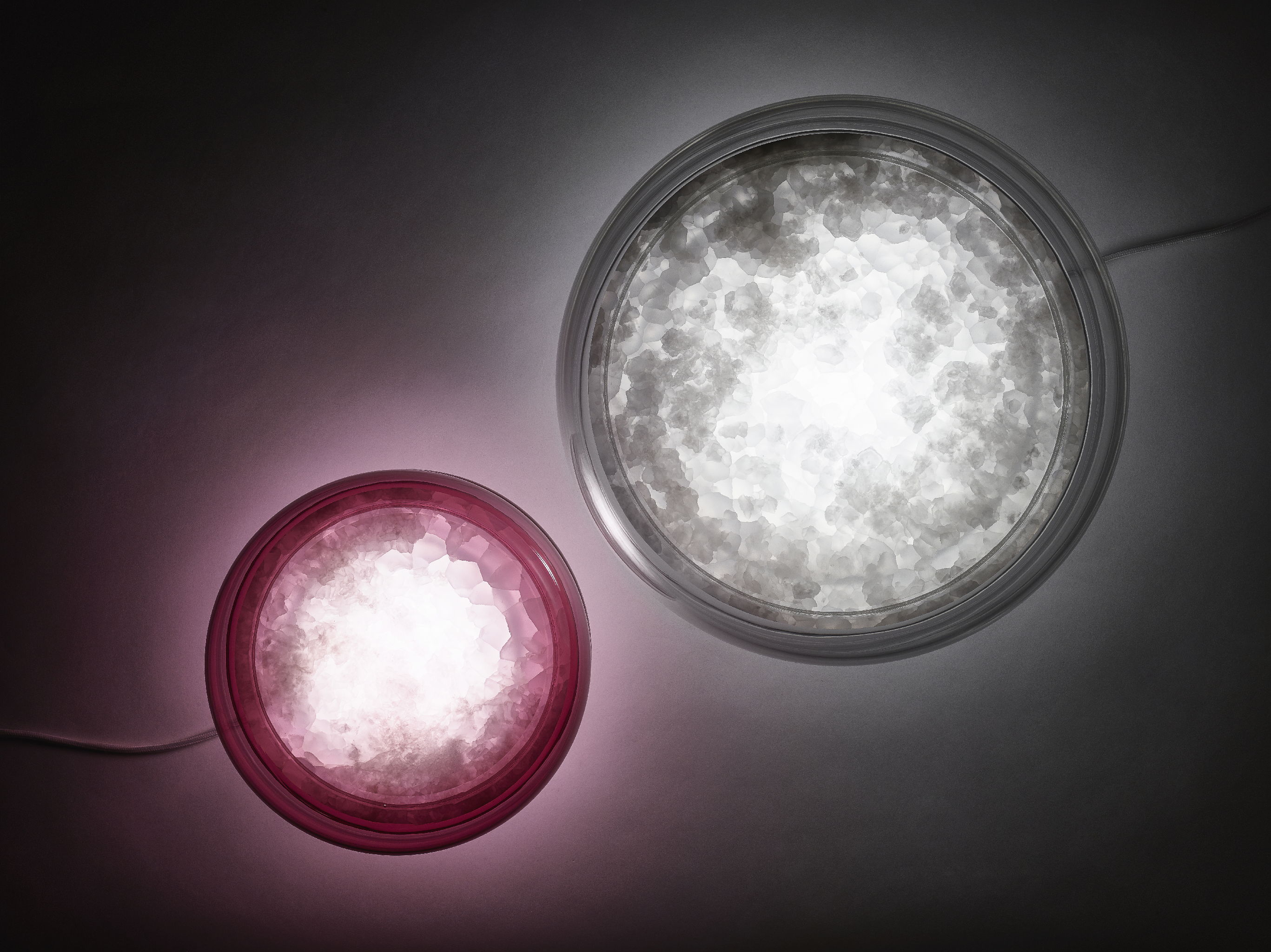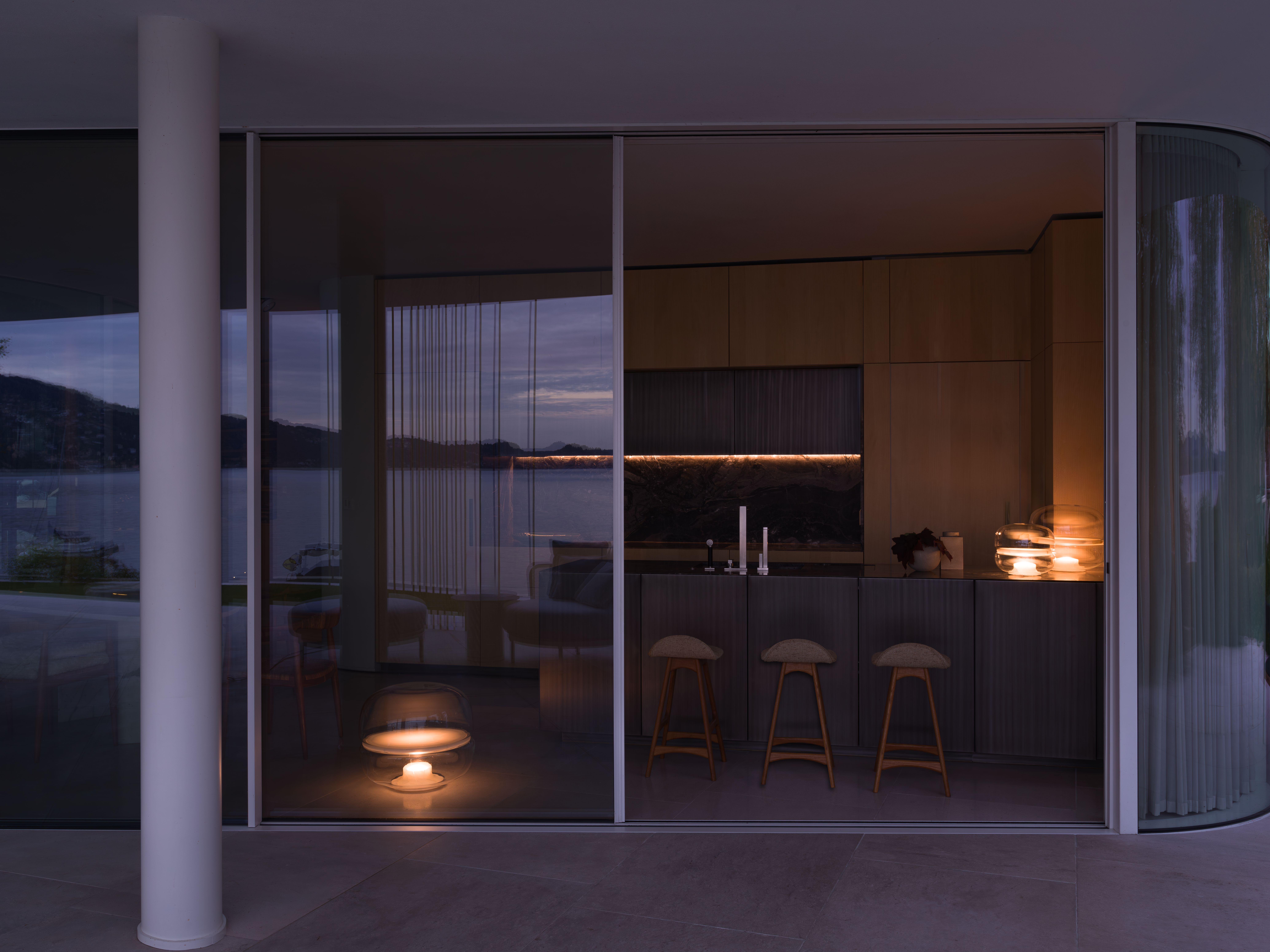 Настольный светильник Macaron воспевает красоту и сложные структуры кристаллического камня. Камень заключён между противоположными куполами из тонкого выдувного стекла, создавая эффект лунного пейзажа, парящего в собственном космосе. Световой источник излучает свет вверх от основания из оникса, подсвечивая извилистые жилки халцедона на центральной ониксовой пластине и формируя мягкий, завораживающий световой эффект.