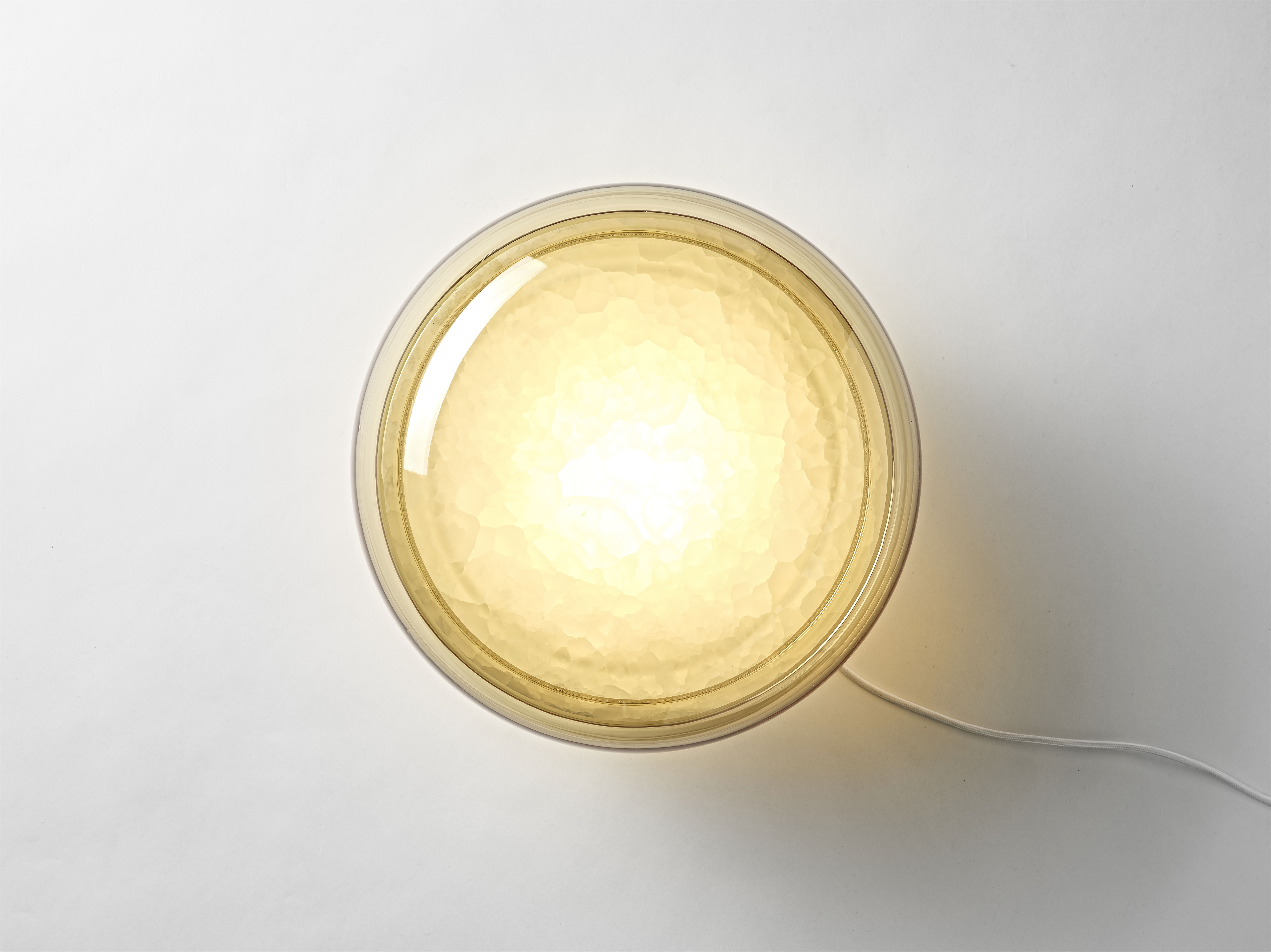Концепция строится на принципе подсветки камня, а название отсылает к форме, напоминающей знаменитый французский десерт меренгу. Естественные особенности стекла и разнообразие структур камня делают каждый светильник уникальным произведением. Чистота натуральных материалов и мастерство их обработки создают свет с неповторимой атмосферой.