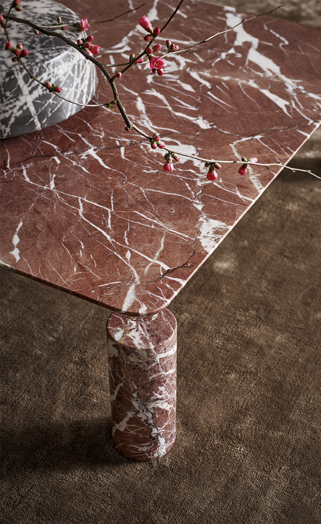 Magic представлен в двух размерах и доступен в полном мраморном исполнении или в виде комбинации материалов. Особенно эффектно выглядит вариант из мрамора, где контраст между тяжёлой фактурой и визуально пустым пространством между столешницей и опорами становится особенно заметным. В других версиях мраморная или стеклянная столешница сочетается с металлическим основанием, позволяя адаптировать столик к различным стилям интерьера.