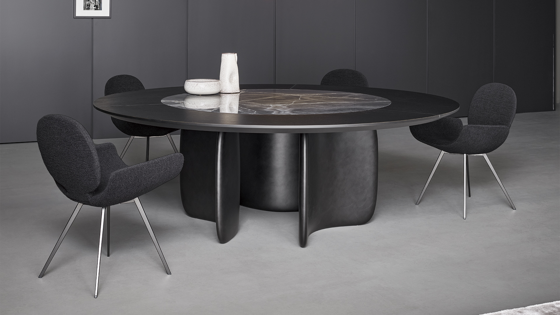 Стол Mellow, созданный студией Bartoli Design, выделяется плавными, скульптурными формами и внушительным силуэтом. Его основание, выполненное из прочного изогнутого полиуретана, в версии Mellow ST (Swivel Top)приобретает новый характер за счёт внешней направленности элементов. Мягкие округлые линии придают модели визуальную лёгкость и сбалансированность, позволяя ей органично вписываться в интерьер.