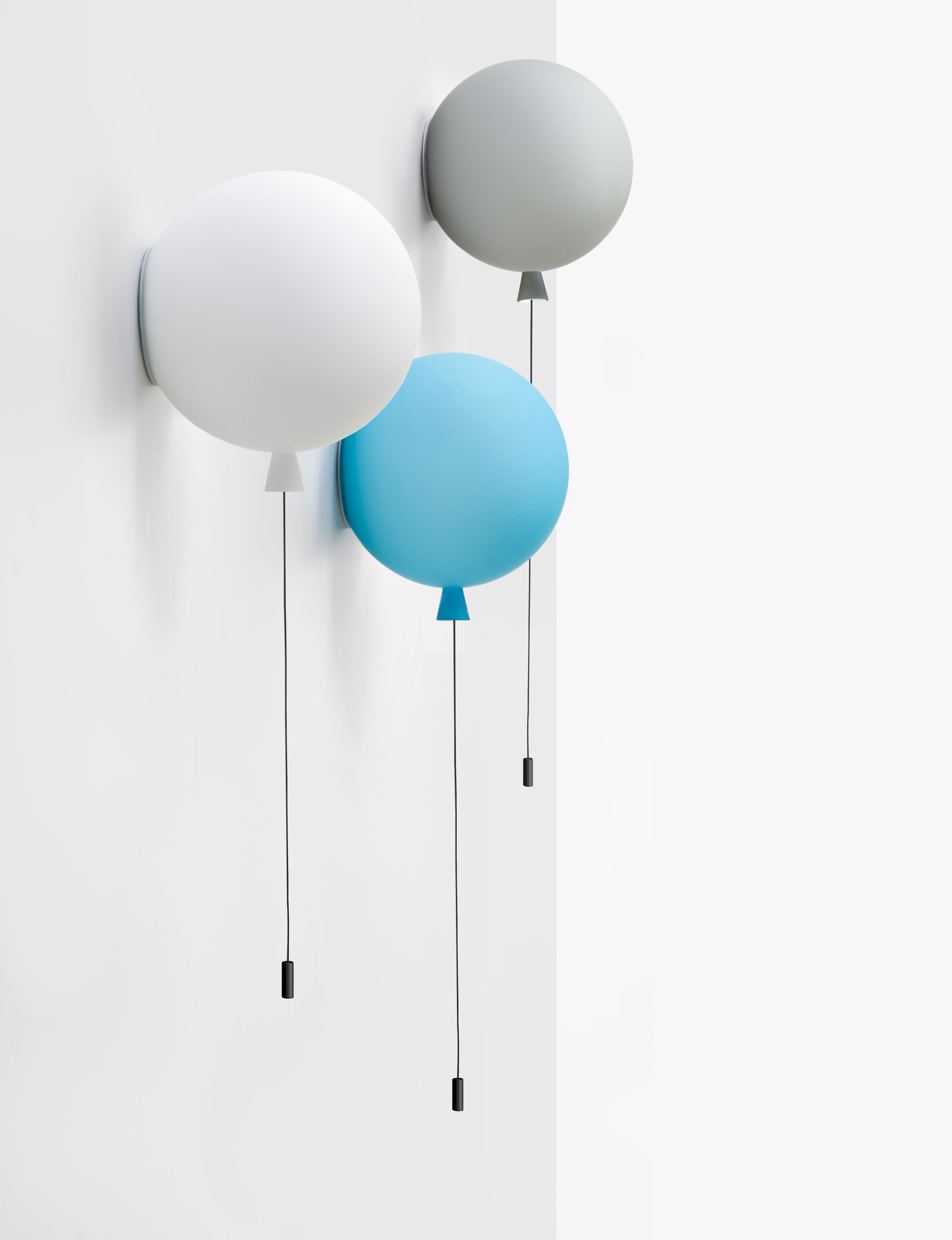 Коллекция Memory пробуждает воображение и возвращает к беззаботному детству. Светильники представлены в настенном и потолочном вариантах разных размеров, с широким выбором цветов и отделок, что придаёт коллекции высокую степень вариативности. Иллюзия надутых воздушных шаров выполнена до мельчайших деталей, включая свисающую «нить», которая служит для включения и выключения света. Это красота в самой простой и убедительной форме.
