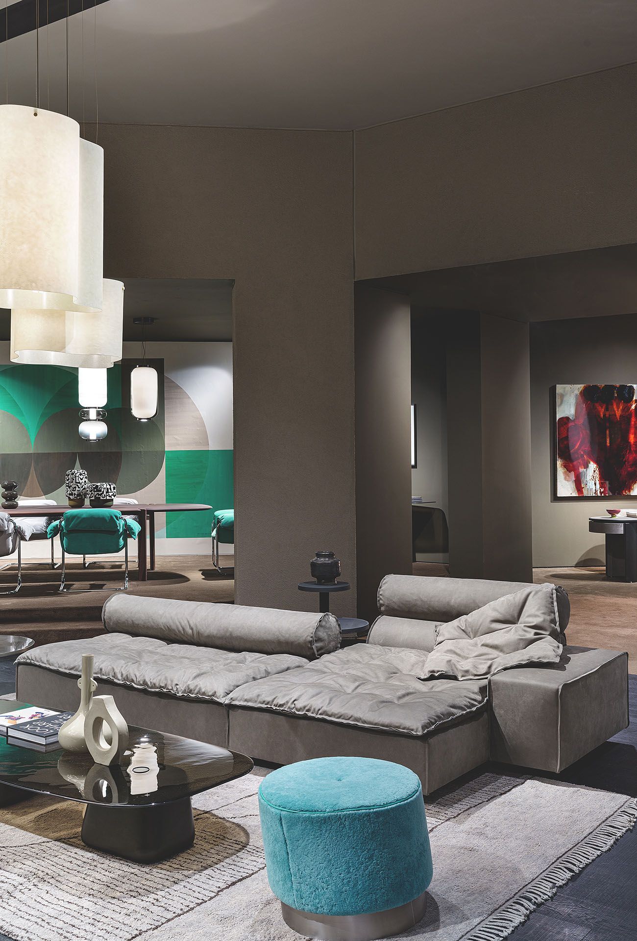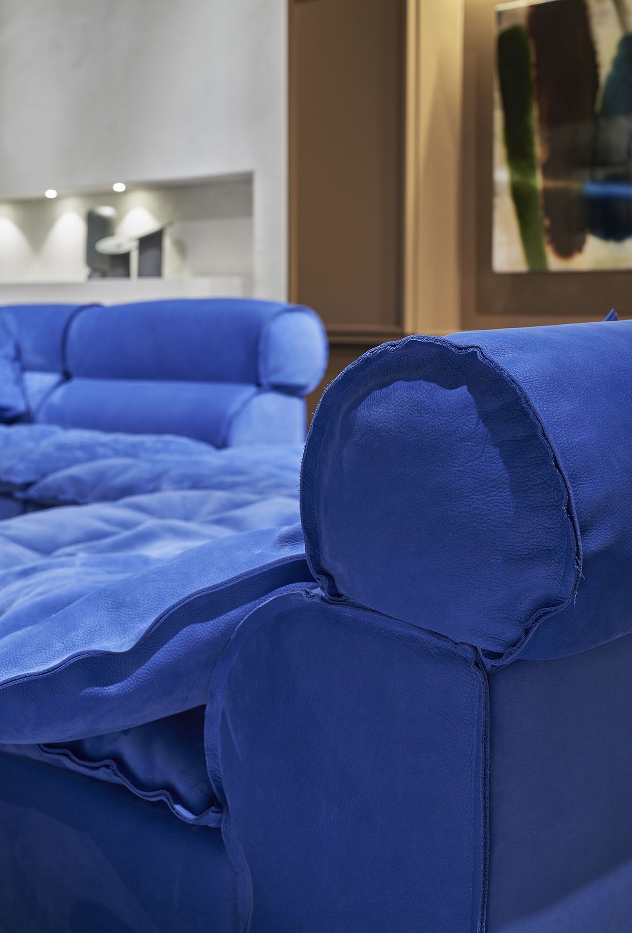 Детали, такие как разнообразные по размеру подушки и подголовные валики, а также шелковистая на ощупь кожа с грубыми швами, отсылают к эстетике интерьеров 1950–60-х годов, когда главной ценностью становился человек, а предметы интерьера — отражением его личности. Miami Soft — это центр притяжения и место уединения одновременно, сердце современного дома.