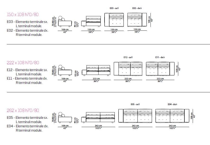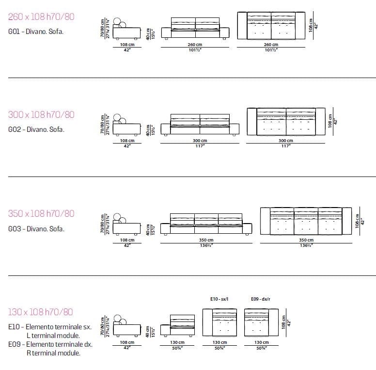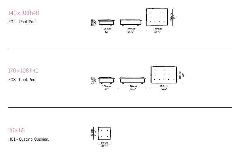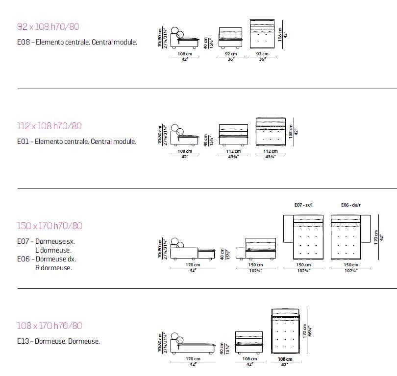 Подушки: сиденья наполнены пенополиуретаном AirSoft и покрыты акриловым волокном. Спинка — с подвижными валиками из пенополиуретана, покрытыми смесью стерилизованного пуха и акрилового волокна.
