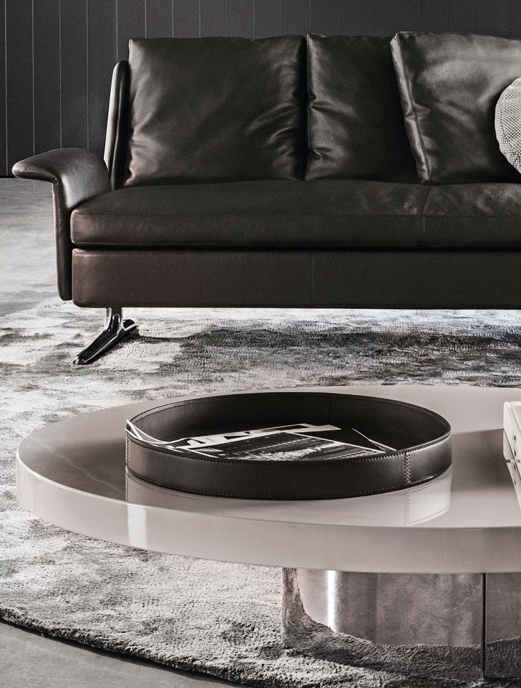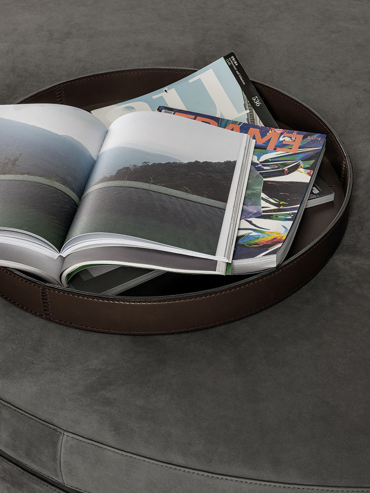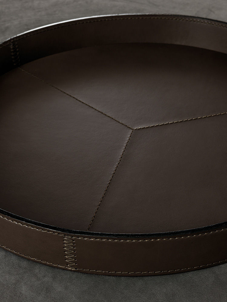 Mik — поднос, полностью обтянутый седельной кожей, подчеркивающий статус и эстетику. Доступен в круглой и квадратной форме, в оттенках Mud, Tobacco, Dark Brown и Black.