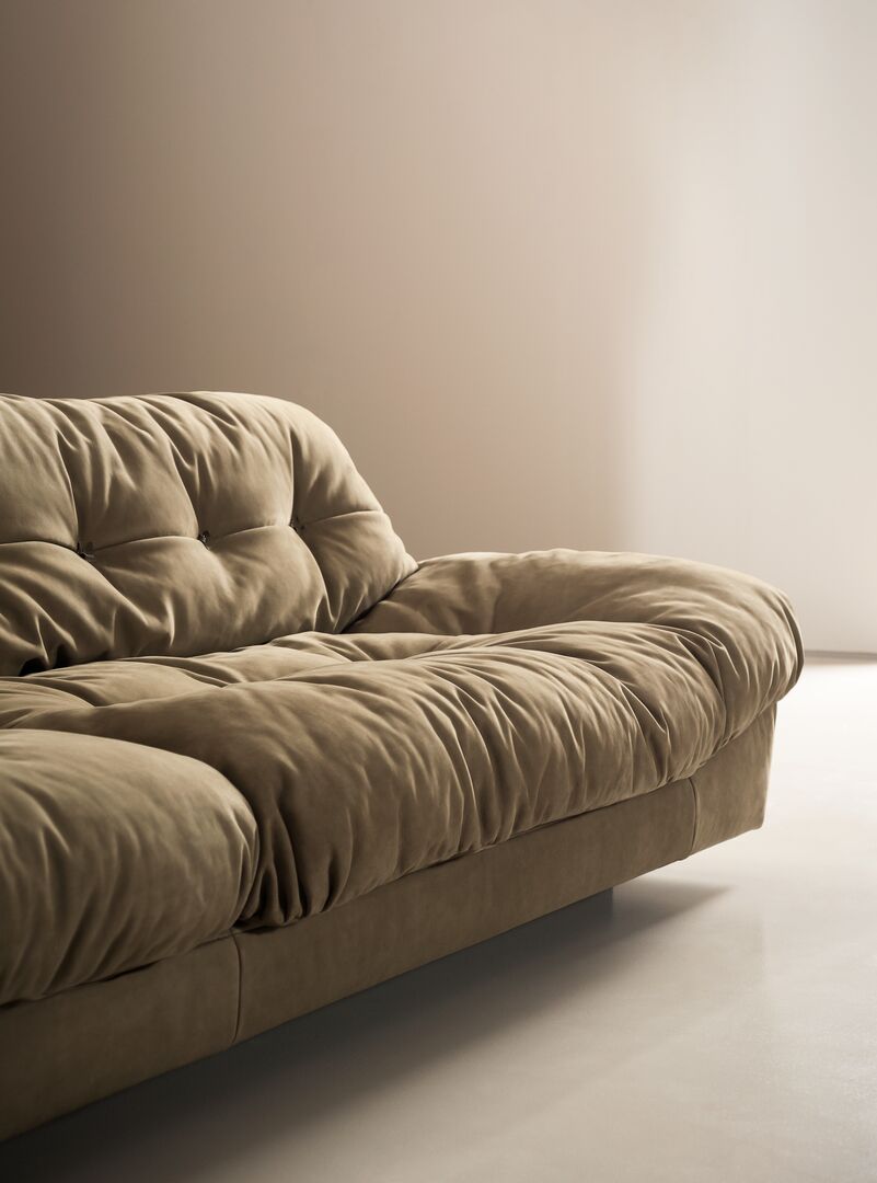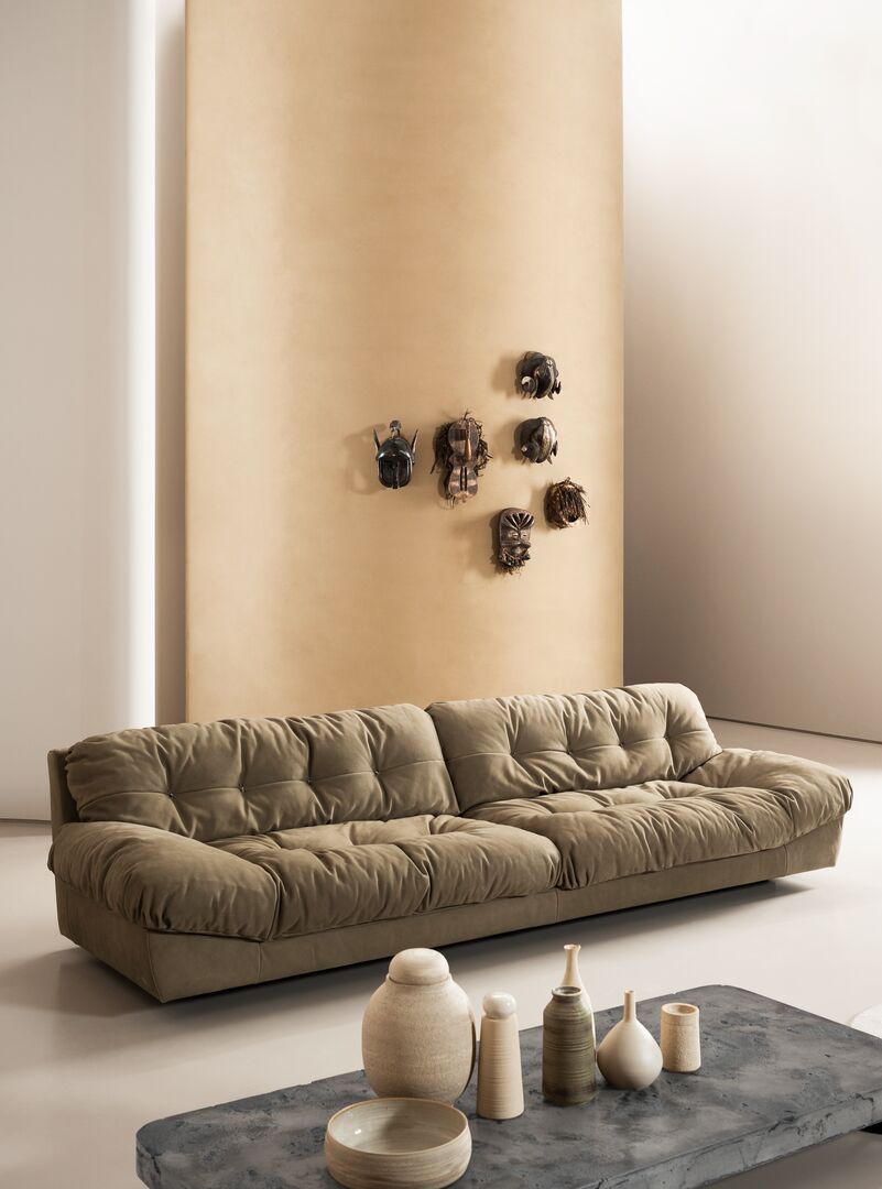 Это диван, который не диктует, а принимает. Идеален для больших гостиных, зон отдыха и приватных пространств, где ценятся тактильность, глубина и визуальная мягкость.