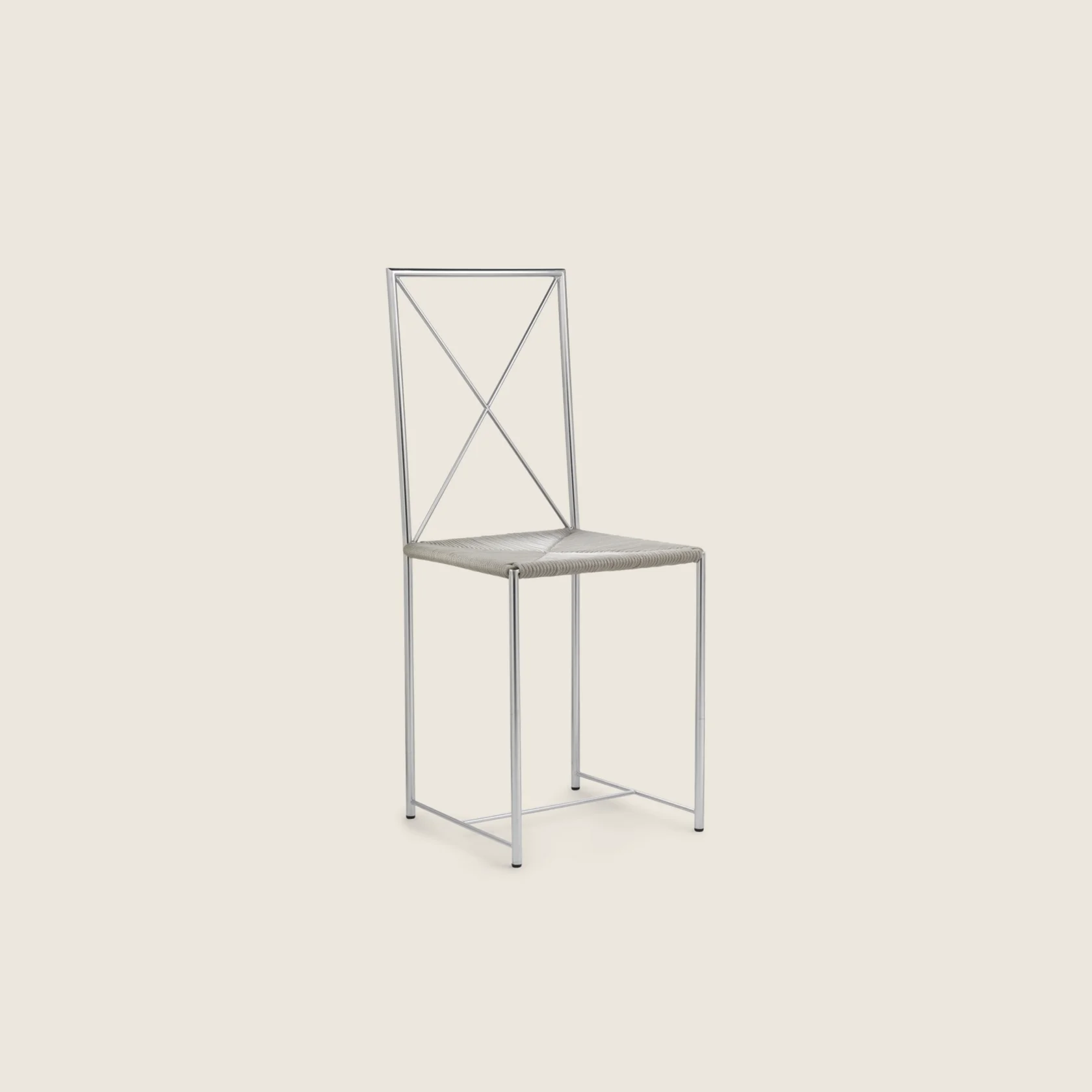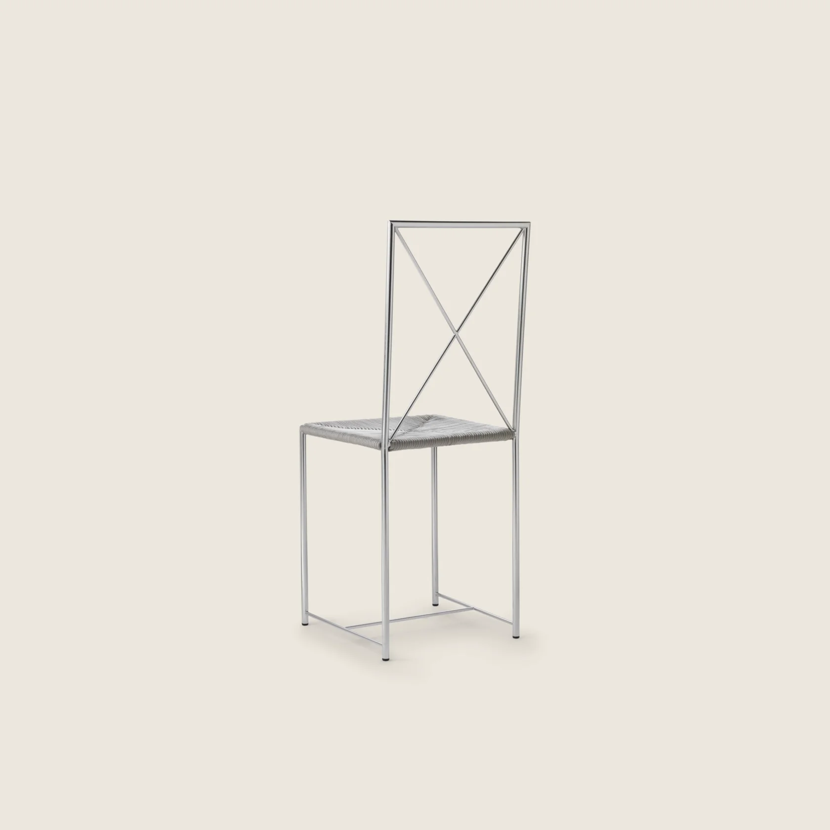 Каркас выполнен из нержавеющей стали с порошковым покрытием (цвета: белый, бордо, зеленый, черный и другие). Сиденье и спинка — синтетическая плетеная лента, устойчивая к воздействию солнца и влаги.