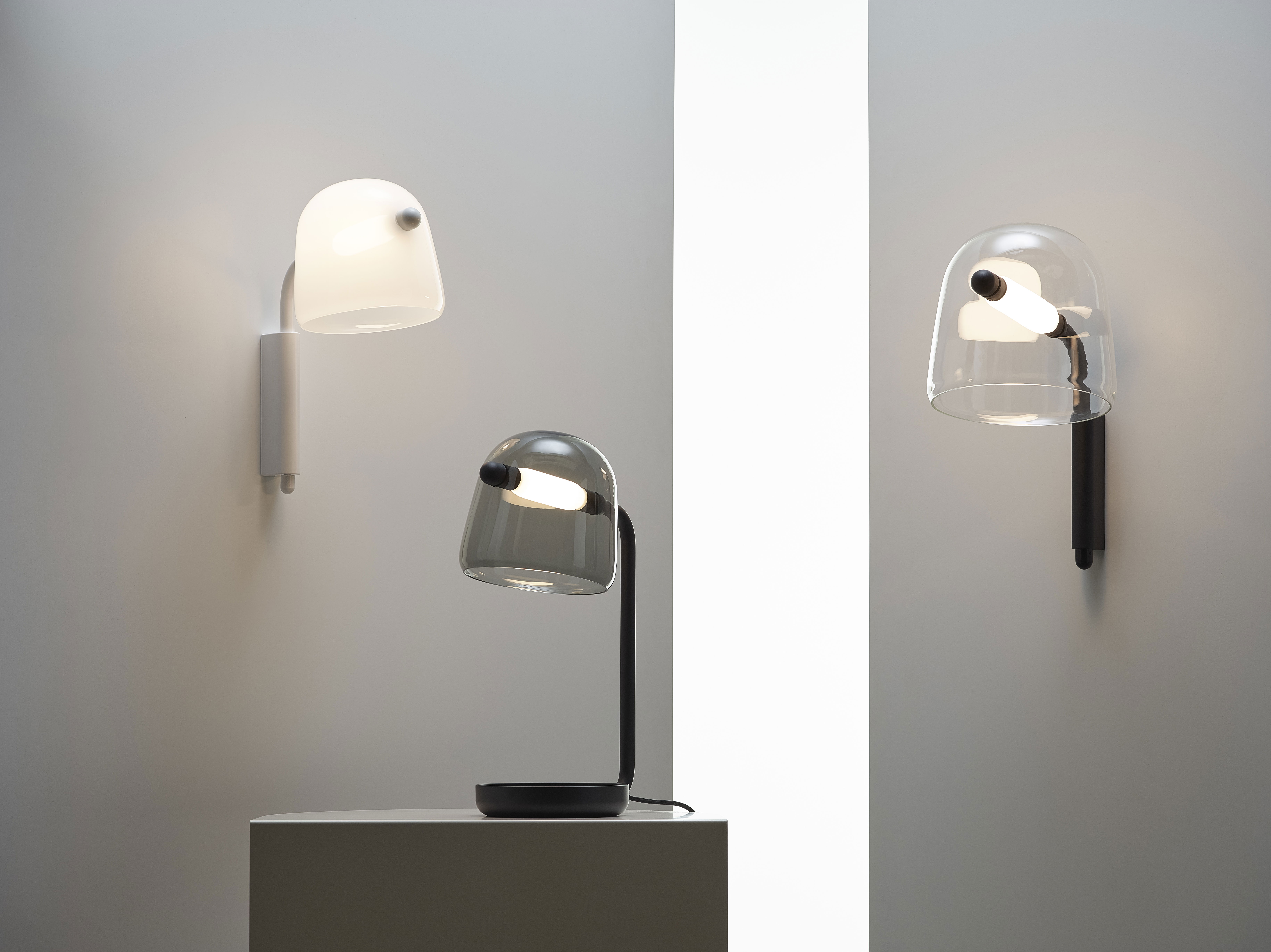 Коллекция Mona строится на концепции пронизывающих форм, где источник света смело проходит сквозь объемный плафон из гладкого выдувного стекла, создавая выразительное напряжение и динамику в интерьере. Главная ценность серии заключается в нестандартной конструкции и гармоничном сочетании тщательно подобранных материалов.