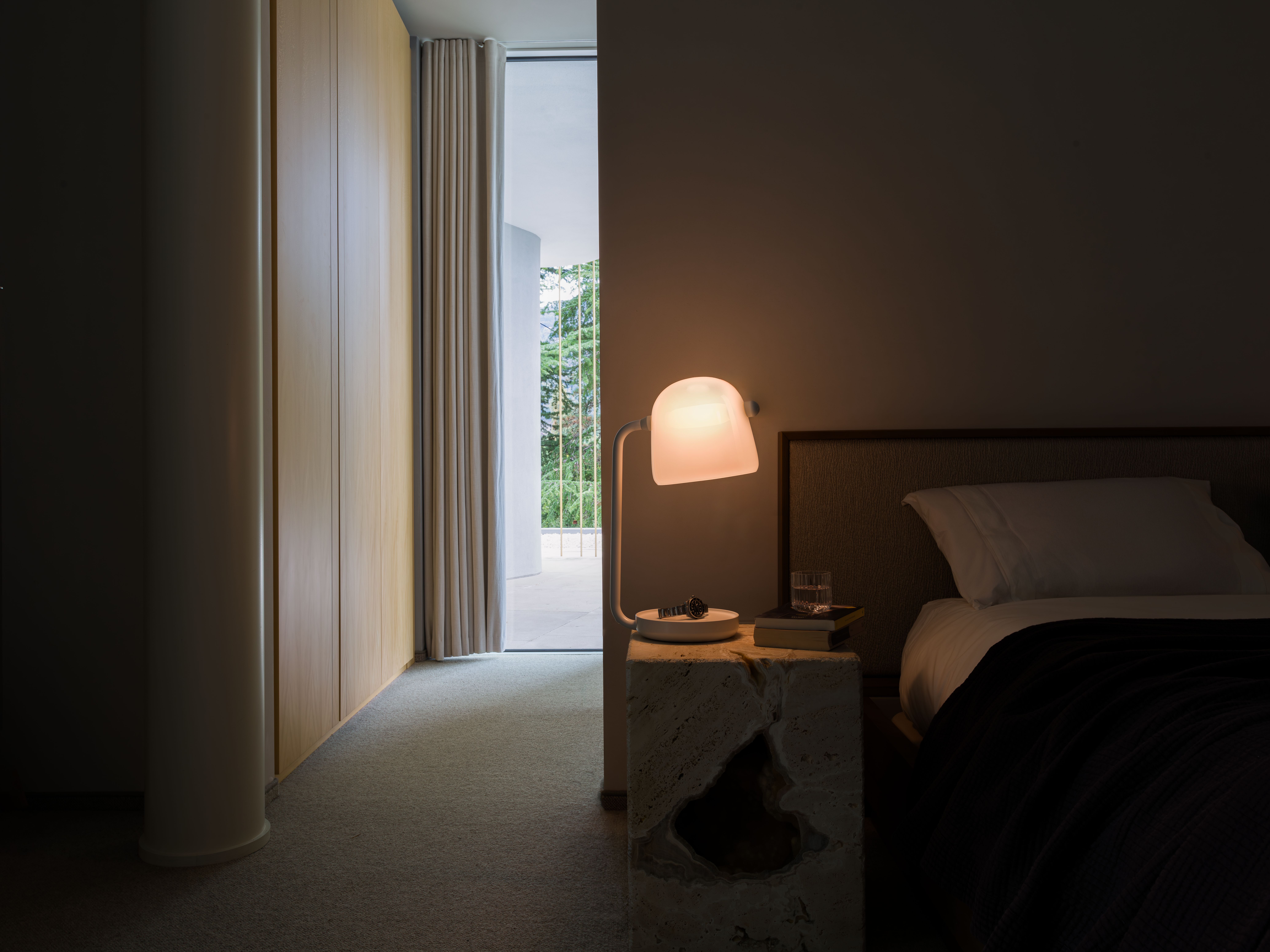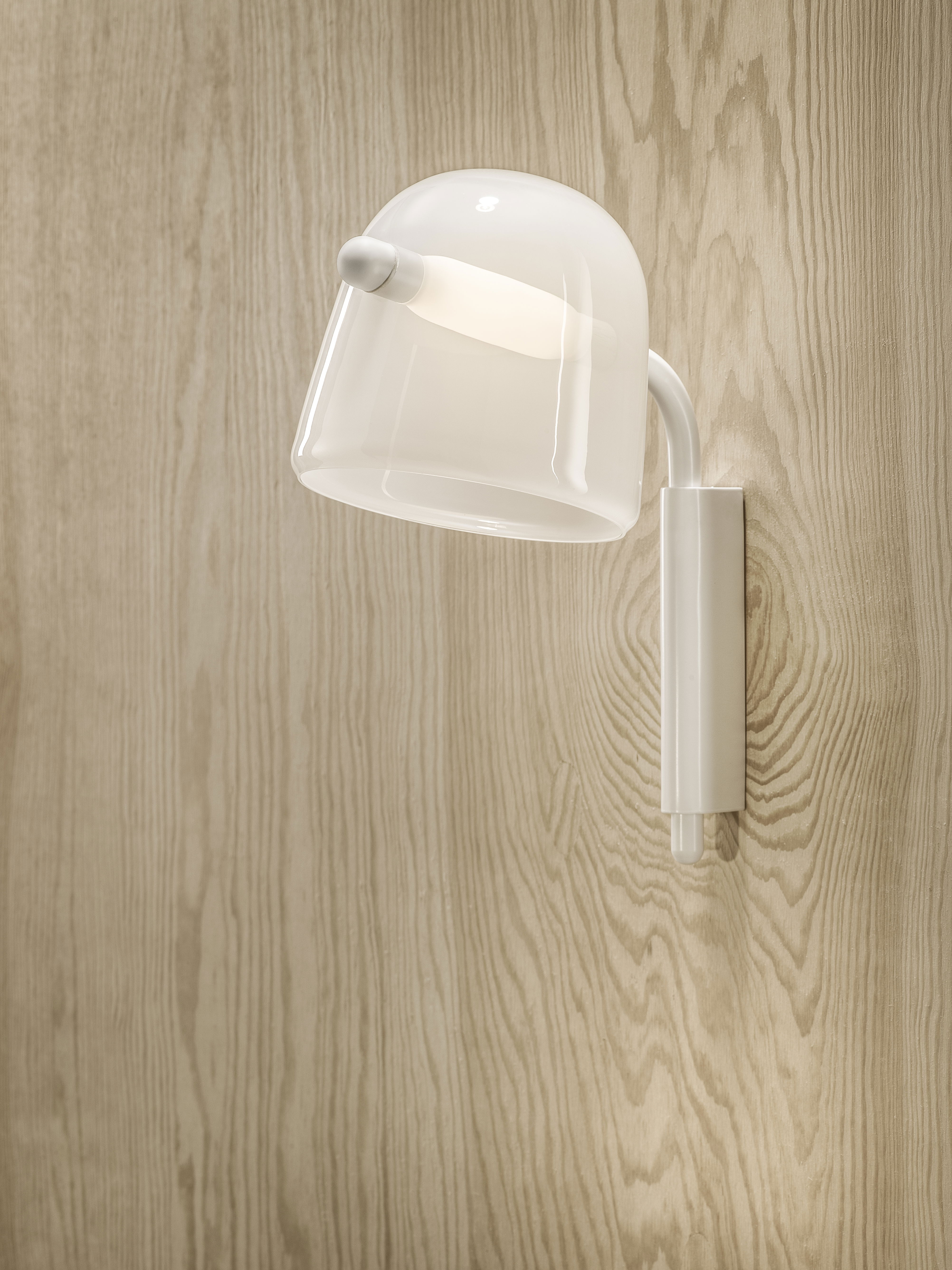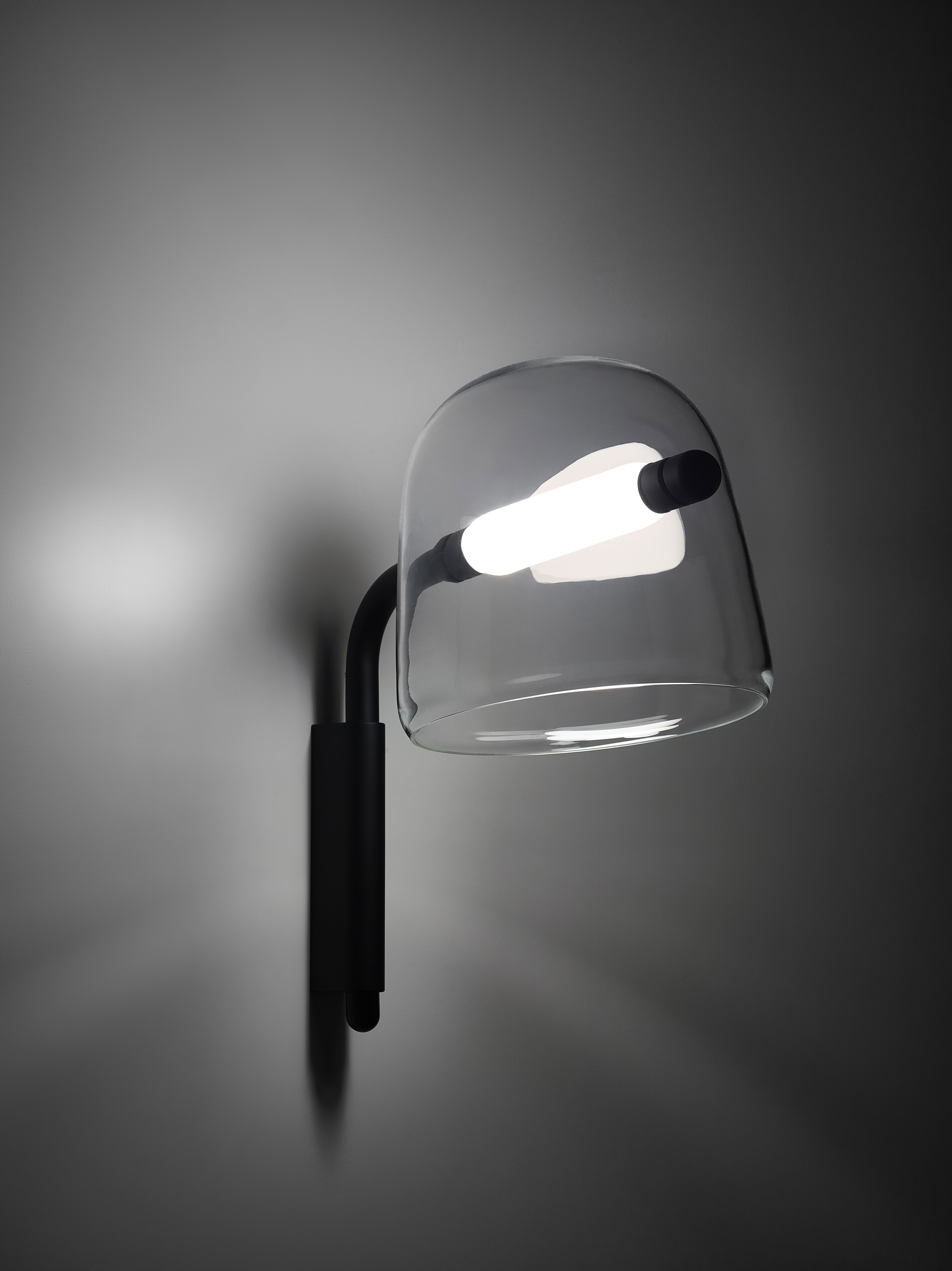 Коллекция Mona построена на идее пронизывающих форм, где источник света становится ключевым элементом композиции. Световой модуль проходит сквозь объемный плафон из гладкого выдувного стекла, создавая выразительное напряжение между формой и содержанием.