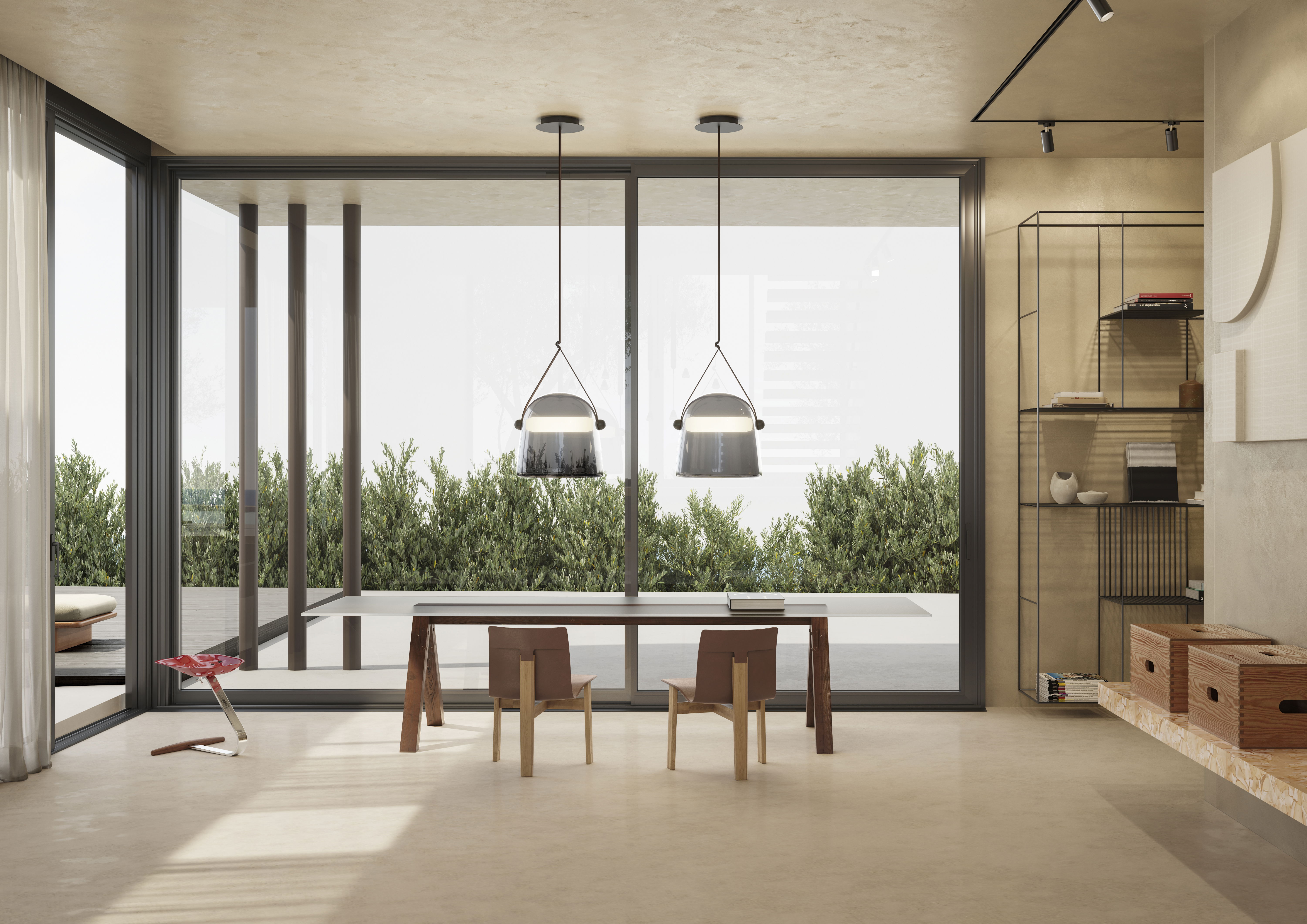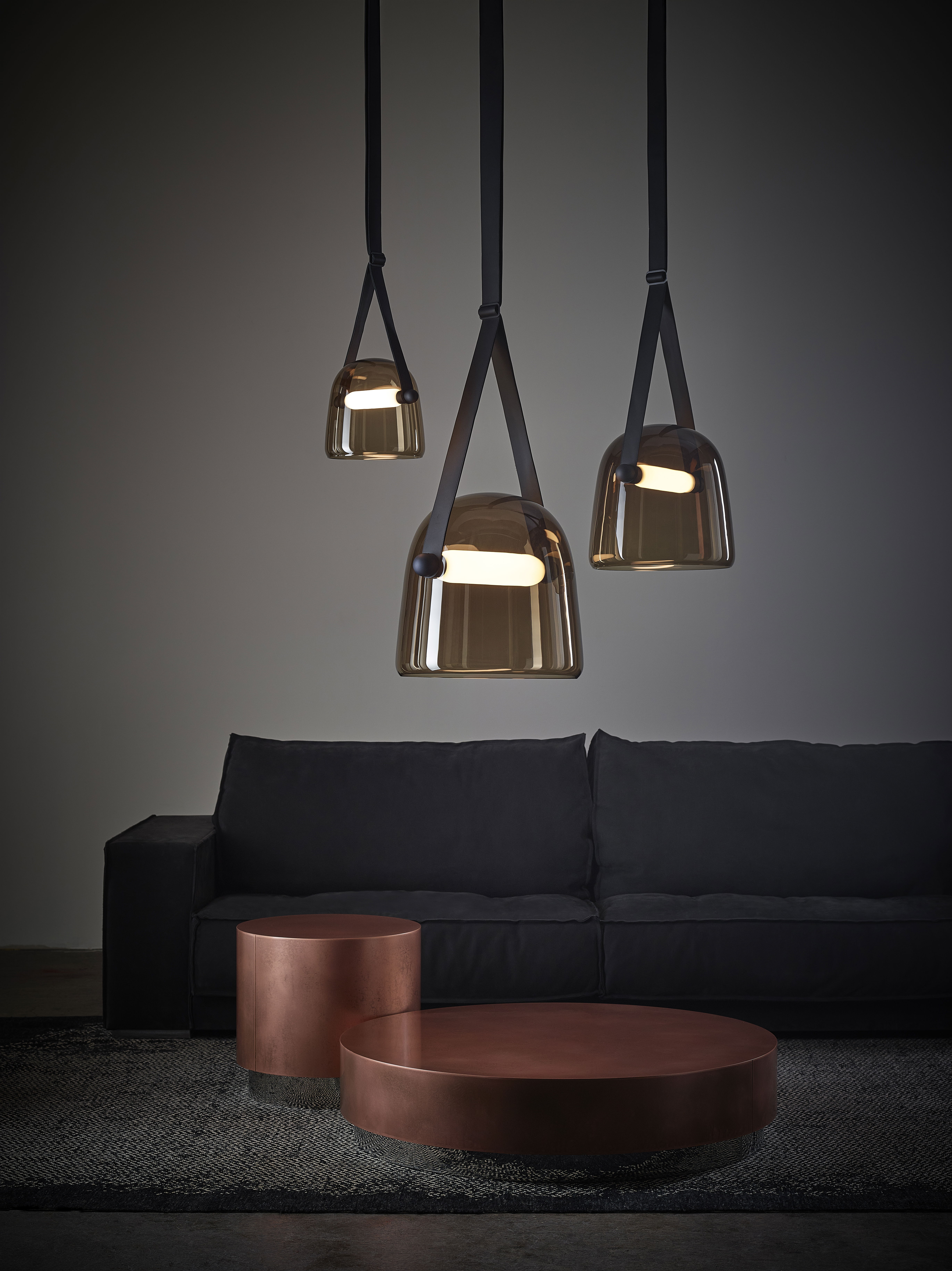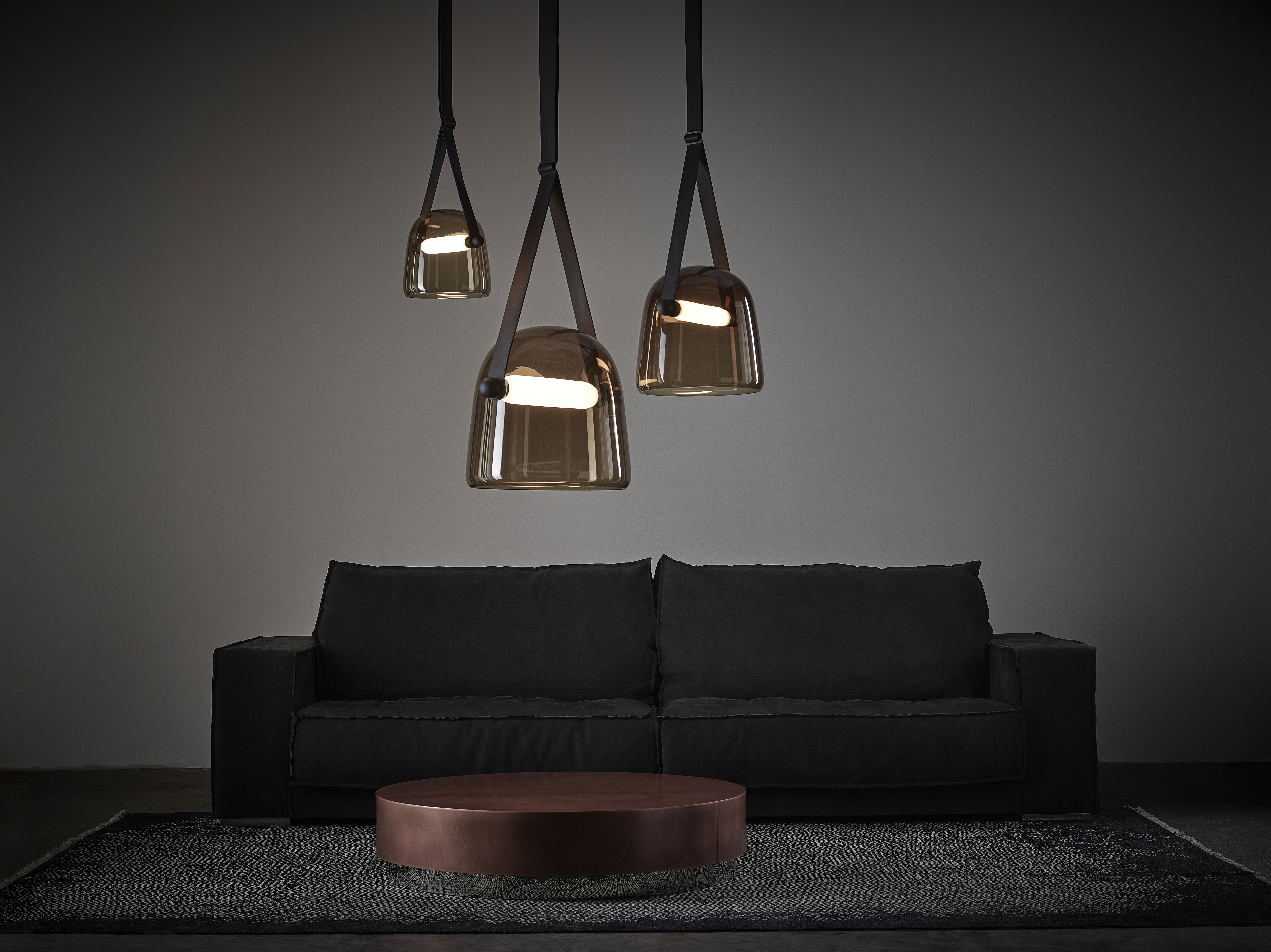 В палитру добавлен новый оттенок стекла — дымчато-коричневый. Коллекция включает несколько размеров (S, M, L, XL) и разнообразные типы светильников — подвесные, напольные, настольные и настенные, что позволяет гибко адаптировать серию под различные интерьерные задачи.