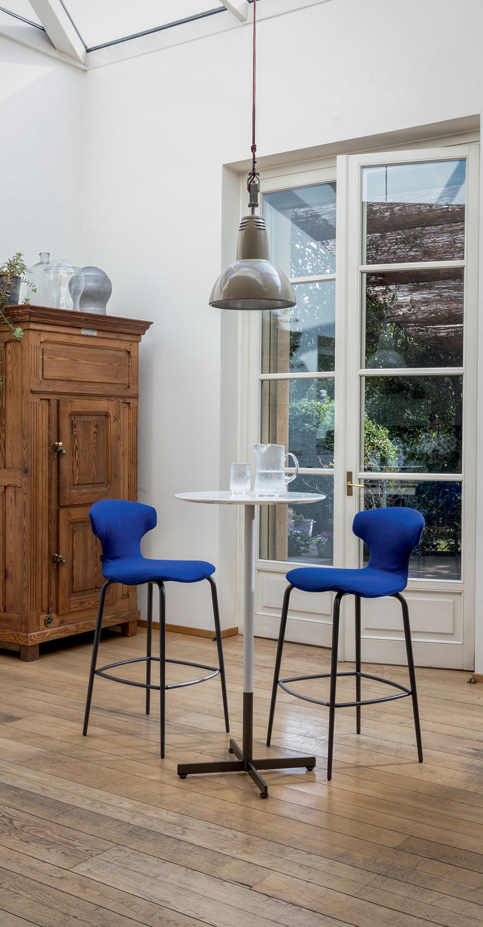 Табурет Montera Mas, обитый кожей Pelle Frau® или съёмной тканью, доступен в двух вариантах высоты и отличается мягкостью сиденья из пенополиуретана. Металлическое основание состоит из трубчатых стальных ножек, доступных в различных вариантах отделки. Ножки соединены кольцом-подставкой для ног с той же отделкой, что и основание, и оснащены защитной пластиной из матовой нержавеющей стали.
