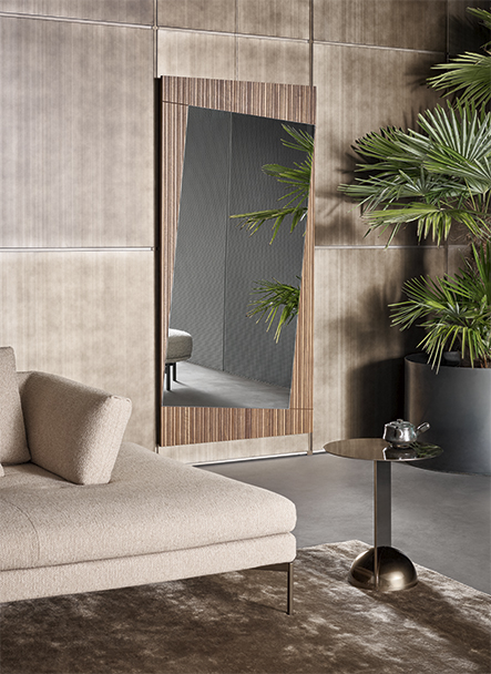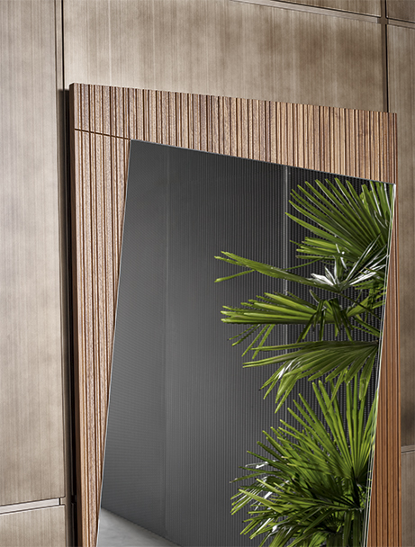 Коллекция зеркал Musa сочетает контрастные элементы: с одной стороны — прозрачность зеркала, отражающего реальность и напоминающего иллюзорные миры, с другой — прочность деревянной рамы. Ритмичная текстура дерева с ребристой поверхностью придает зеркалу объем и динамичность. В прямоугольной версии отражающая поверхность слегка наклонена относительно основания, создавая уникальный визуальный эффект на стене. Коллекция также включает круглую версию зеркала.