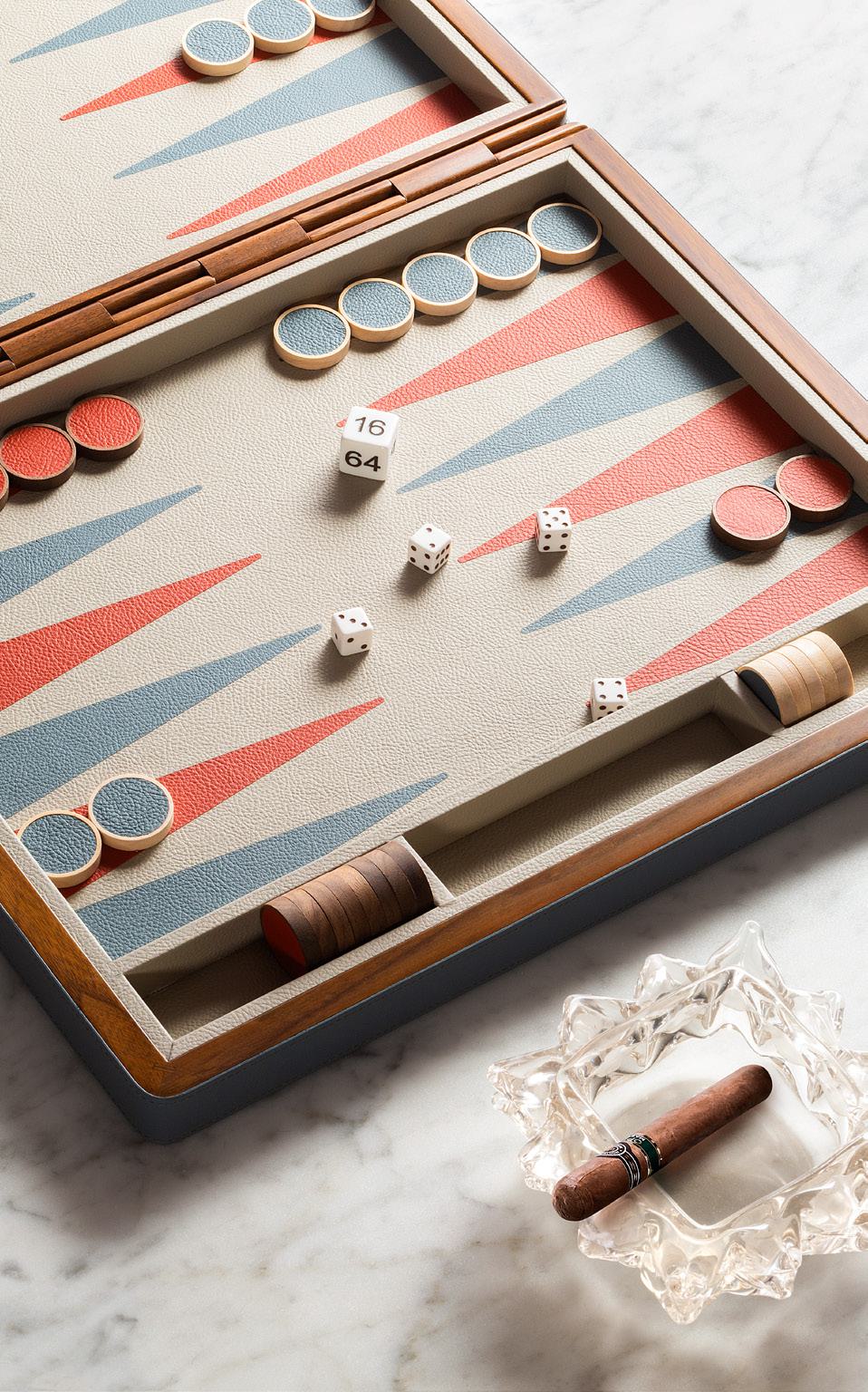 Нарды — одна из древнейших настольных игр. Данный комплект выполнен в корпусе из ореха и махагона, обтянутом кожей, с мастерски инкрустированным игровым полем. Игра дарит тактильное и визуальное удовольствие.