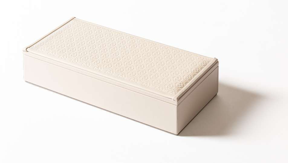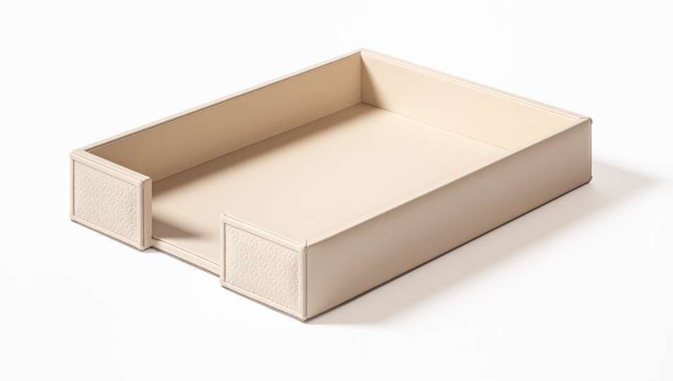 ESSA048 Лоток для бумаги формата A4 с кожаной вставкой Monogram и аккуратной геометрией корпуса.