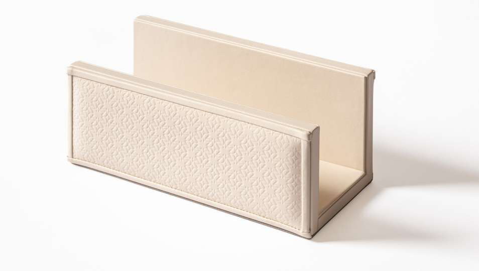 ESSA046 Держатель для конвертов с мягкой кожаной отделкой и декоративными металлическими элементами.