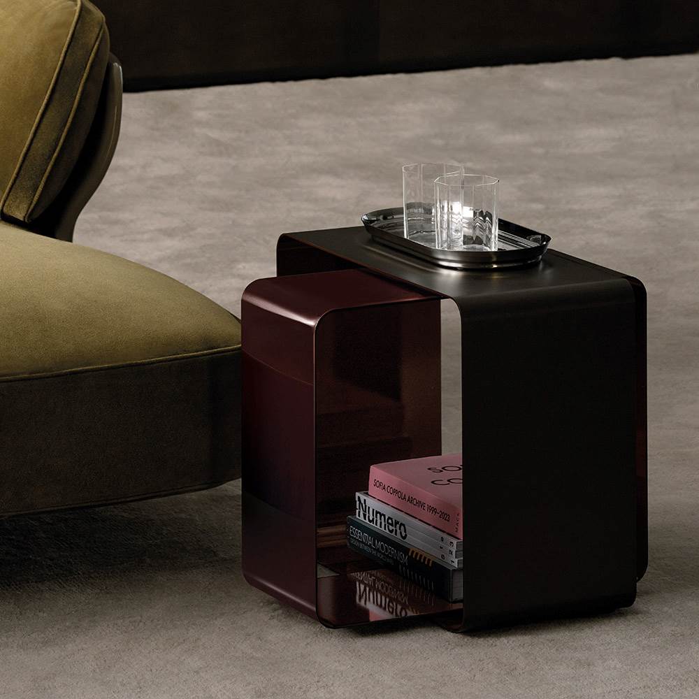 Модель Nastro выполнена из цельных листов металла, соединённых изгибом под прямым углом. Минималистичный и графичный силуэт делает этот столик эффектным акцентом в пространстве.