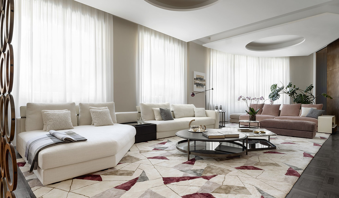 Poliform — бренд, мыслящий архитектурными системами. Коломбо создаёт предметы, которые работают как узлы большого интерьерного механизма, а не отдельные объекты.