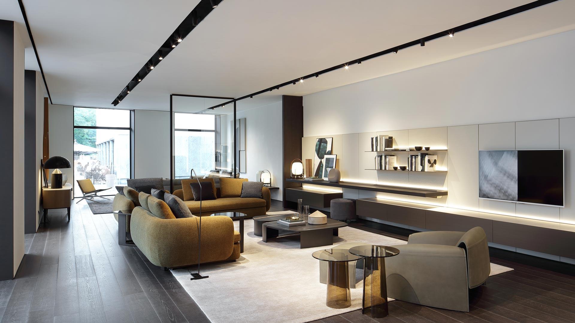 Первое — новый флагманский шоурум в историческом палаццо на Piazza della Scala. Монументальная архитектура, парадная лестница и выверенные интерьерные сценарии создают ощущение почти дворцового пространства, где продукт интегрирован в архитектуру и образ жизни.