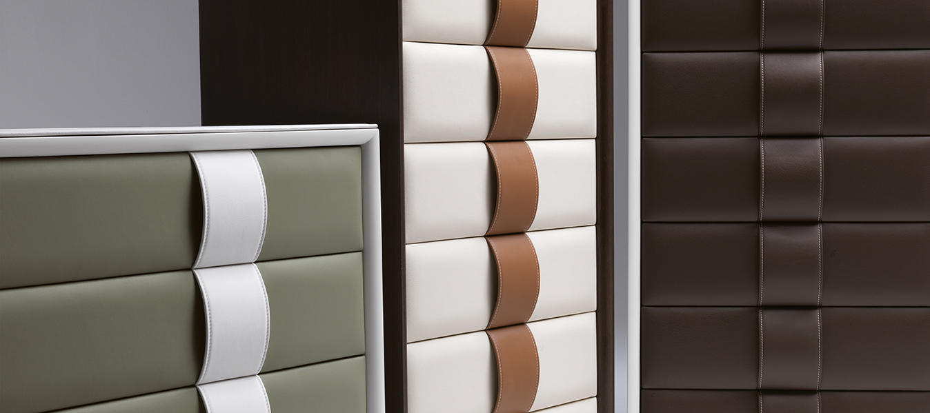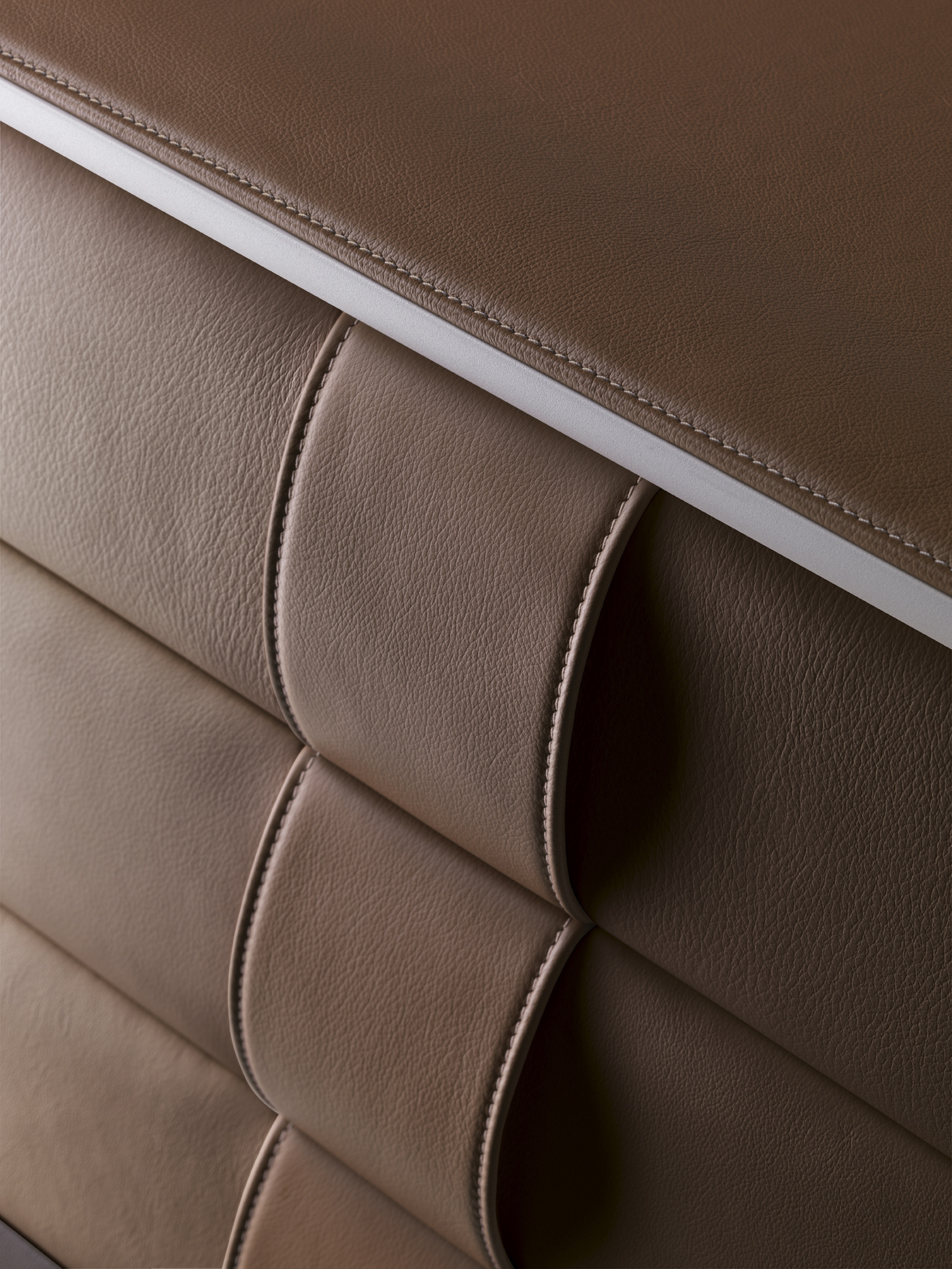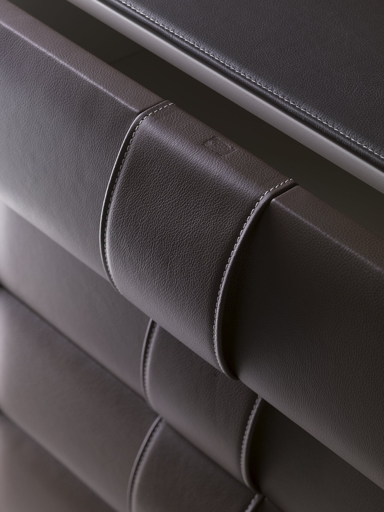 Столешница каждого модуля хранения Obi по запросу может быть дополнена элегантной накладкой из кожи Pelle Frau®.