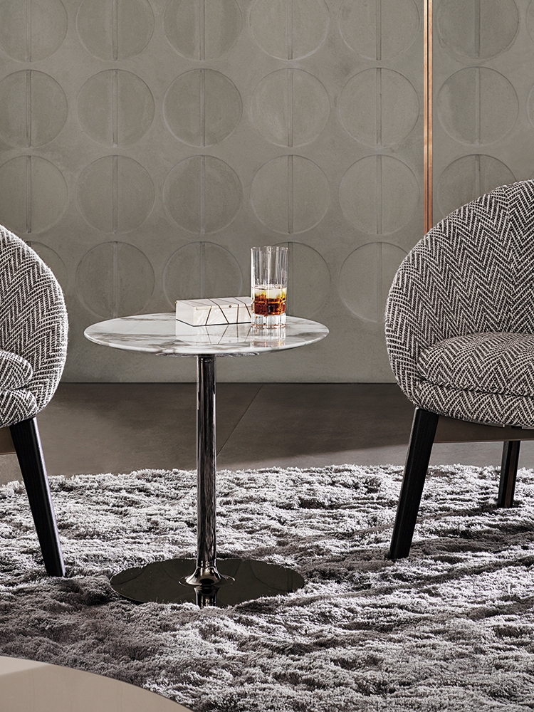 Oliver — столик с выразительной круглой столешницей и скульптурной ножкой. Эстетика модели сочетается с мягкой мебелью, создавая гармоничные композиции в зоне отдыха.