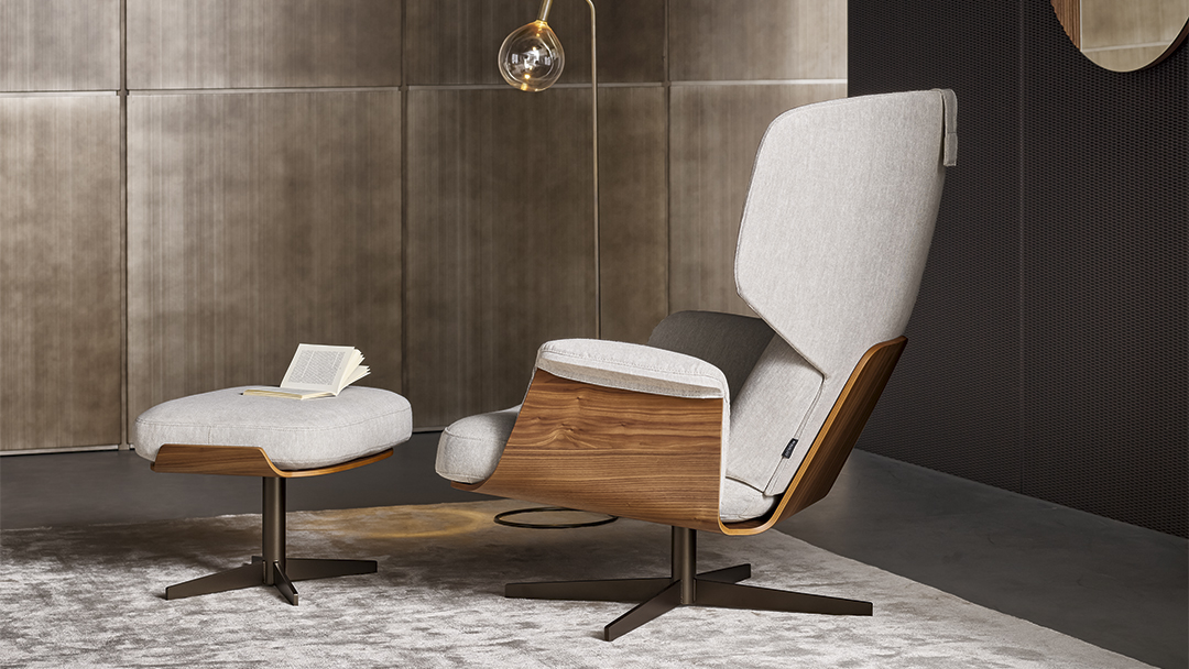 Кресло Olos bergère с подставкой для ног — элегантное дополнение к коллекции Olos, которое придаёт ей целостность и утончённость. Это кресло для отдыха, вдохновлённое эстетикой mid-century modern, переосмысляет знакомые формы, воплощая их в выразительной пластике гнутой древесины.