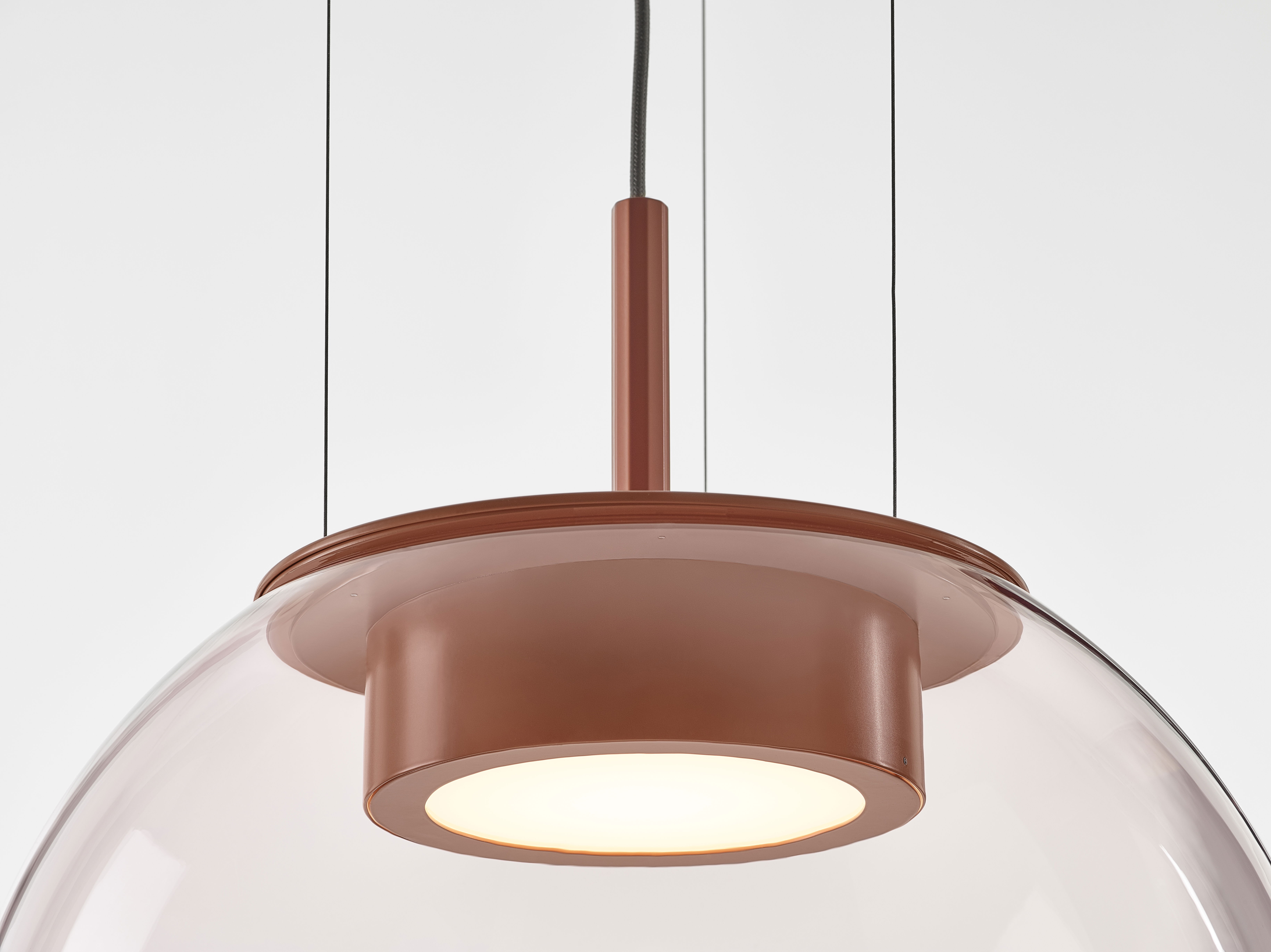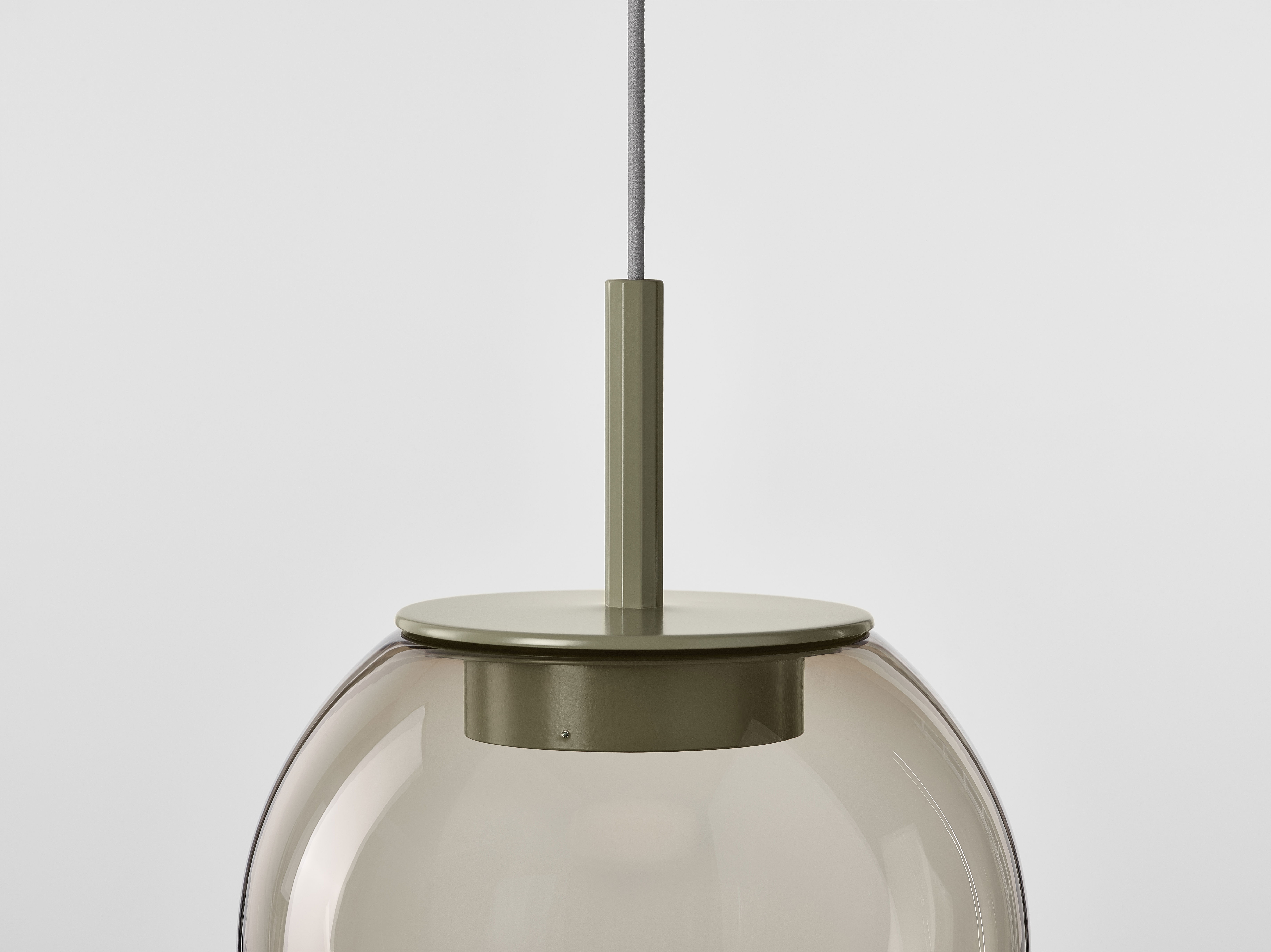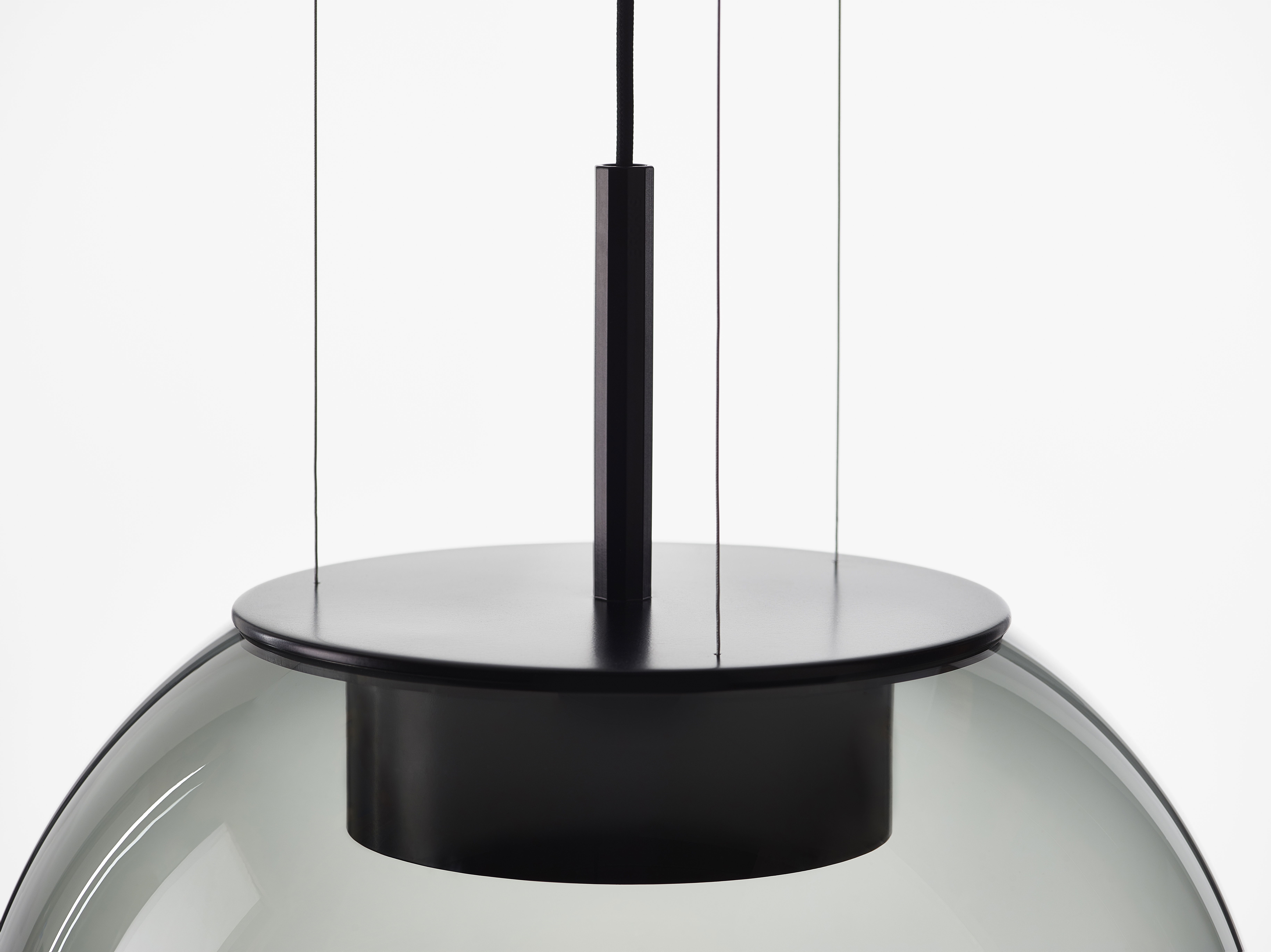 Дополнительные возможности вариативности обеспечиваются выбором стекла в нежных оттенках серого или дымчато-коричневого, при этом металлический корпус выполнен в чёрном порошковом покрытии, подчёркивающем блеск прозрачного стекла. Сочетание этих утончённых элементов создаёт неповторимое очарование интерьера, подходя как для просторных ресторанов и гостиниц, так и для уютных частных помещений. Светильники также доступны с стеклом в нескольких цветовых вариантах, каждый из которых комплектуется металлическими деталями в заранее подобранном соответствующем цвете.