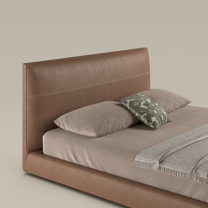 Геометрическая чистота форм превращается в язык минимализма, где каждый штрих подчёркивает благородство материалов и высокую точность исполнения. Кожа подобрана за её тактильные и визуальные качества и естественным образом облегает поверхности, демонстрируя уровень ручной работы и мастерство производства. Вариант с тканевой обивкой, доступный в различных материалах коллекции, придаёт модели более уютный и неформальный характер, а тон-в-тон строчка сохраняет стилистическое единство. Благодаря выверенному балансу объёмов и пропорций, кровать Oris легко вписывается в самые разные интерьерные концепции, оставаясь при этом верной своему выразительному характеру.