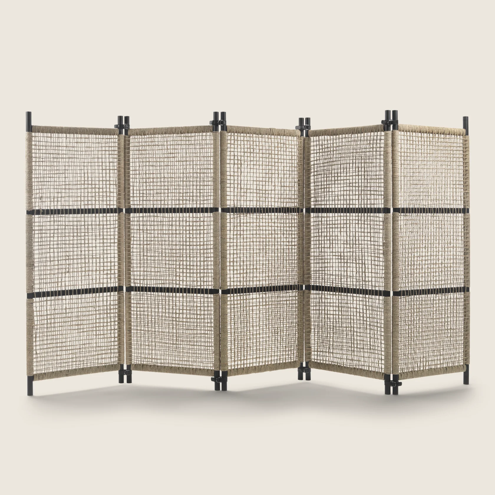 Конструкция: Ширма состоит из трёх или более панелей, соединённых скрытыми металлическими шарнирами, позволяющими свободное складывание и разворот. Каркас выполнен из массива ореха Canaletto или ясеня в различных отделках. Внутренние панели — обтянуты тканью или кожей из коллекции Flexform. Также возможен вариант с обивкой из плетёного шнура ручной работы.