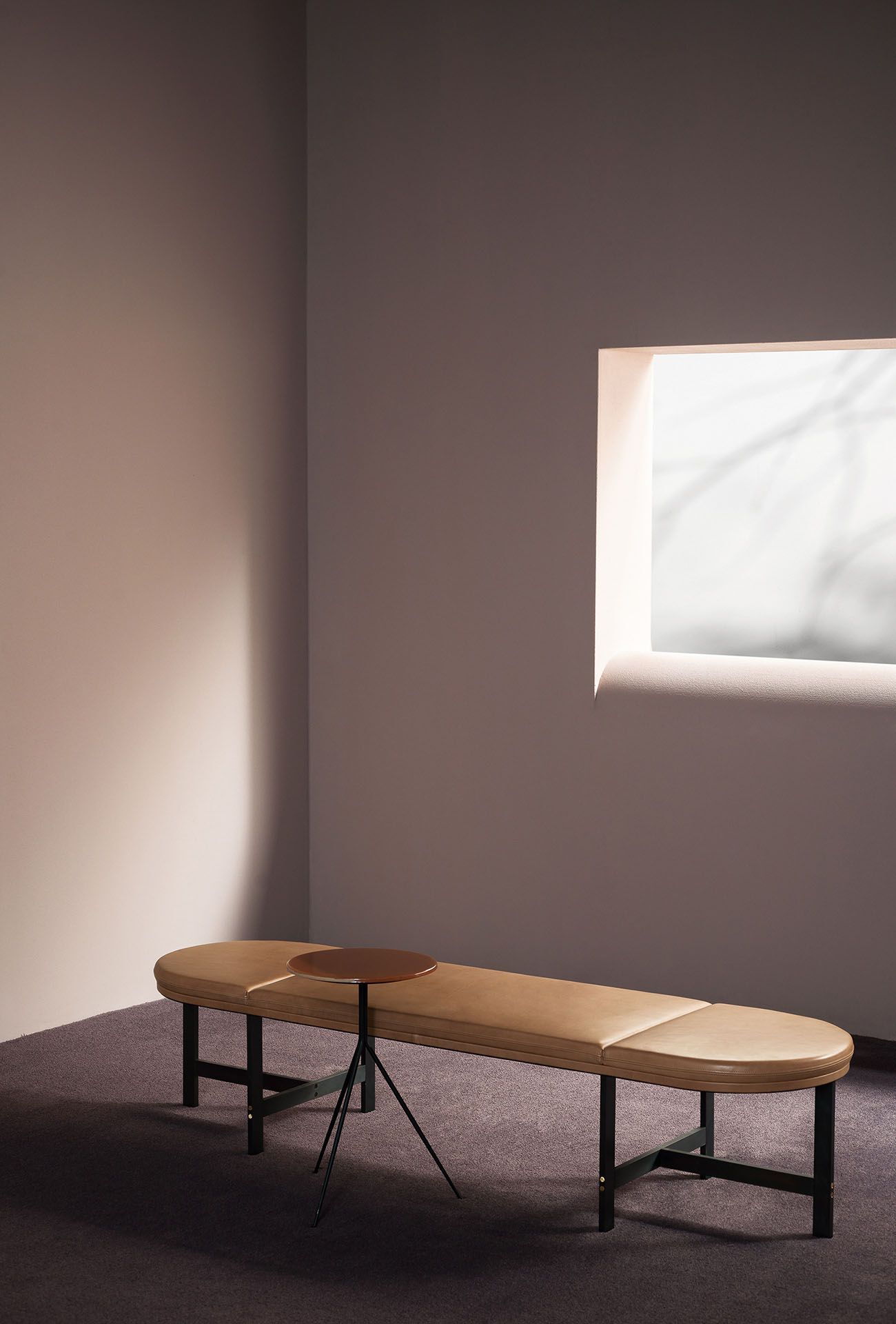 Скамья Passepartout, созданная Федерико Пери, отличается элегантным сиденьем, обитым кожей.