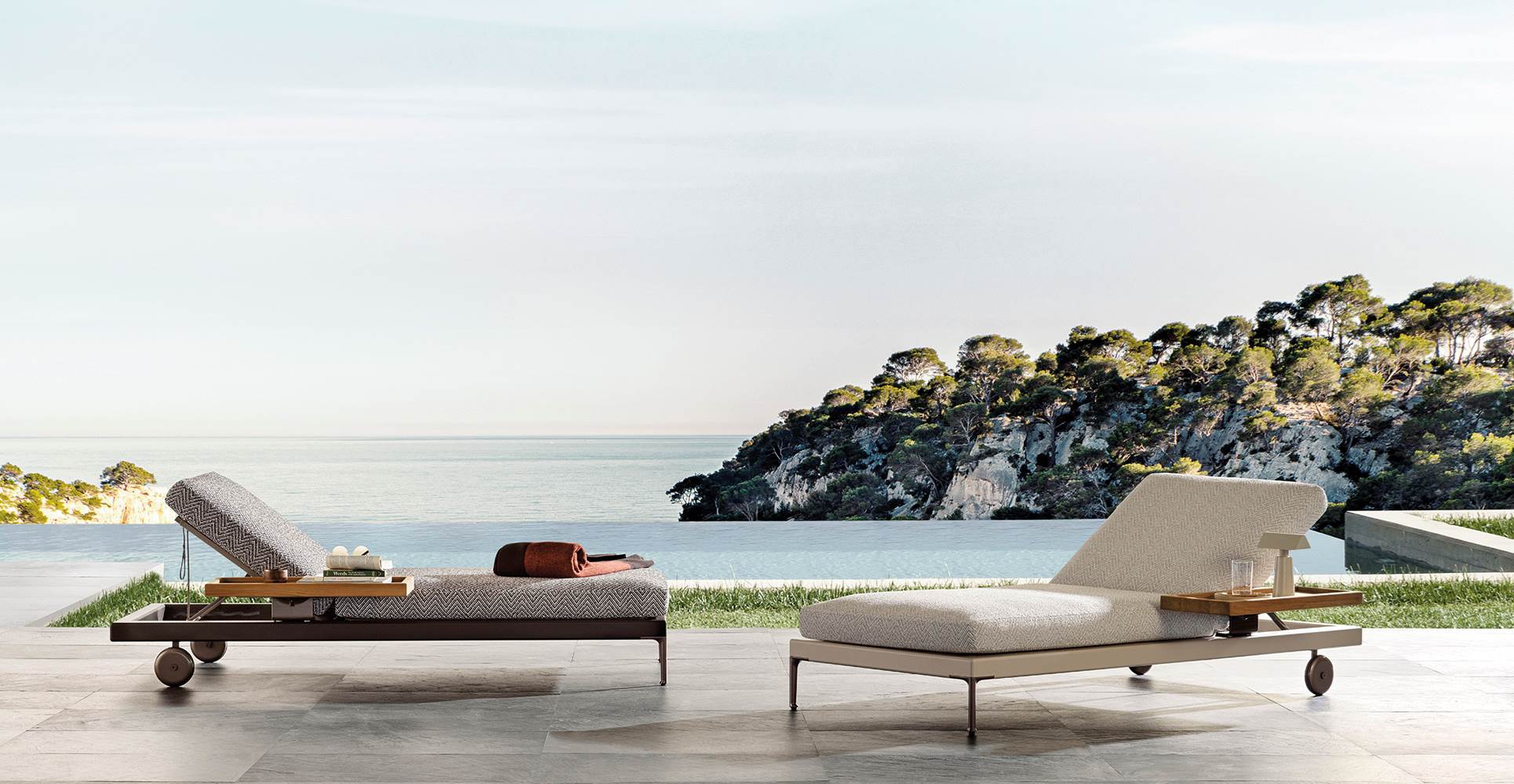 Patio Daybed — часть одноимённой коллекции, вдохновлённой принципами лёгкости и воздушности. Каркас из окрашенного алюминия сочетается с мягким изголовьем, подушками из быстросохнущей пены и текстильными чехлами из outdoor-ткани. Спинка регулируется, создавая идеальные условия для отдыха под открытым небом.