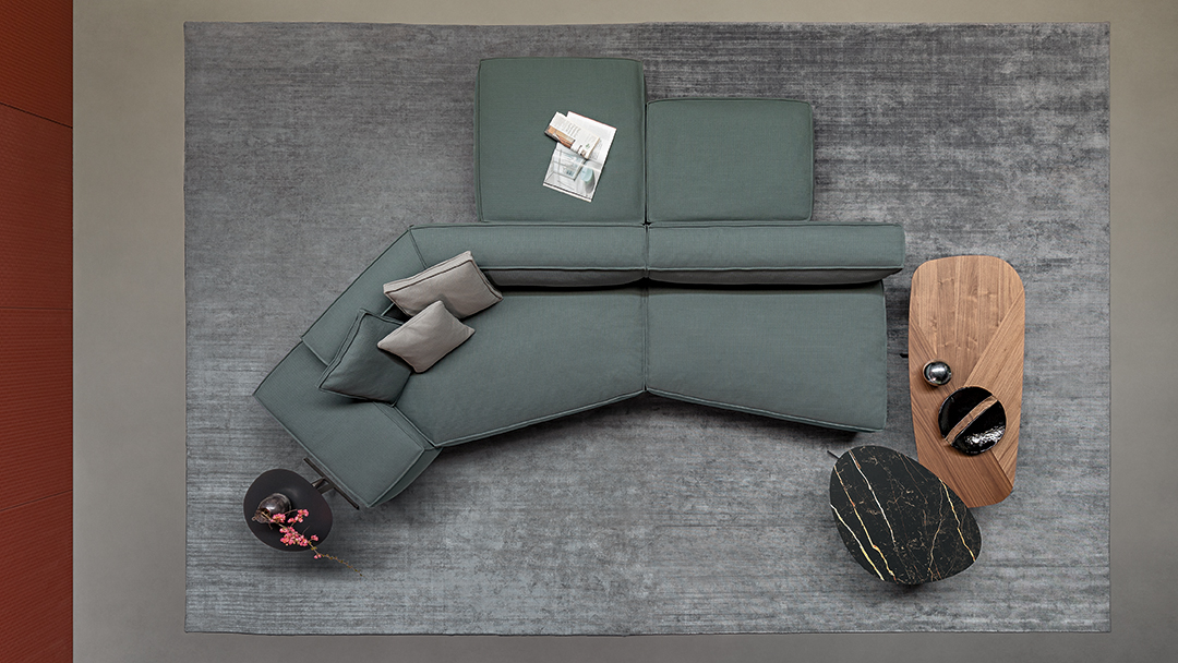 Появление новых асимметричных, пятиугольных и трапециевидных модулей сделало диван Peanut B.X. ещё более гибким и универсальным. Благодаря выразительному характеру он становится акцентным элементом гостиной, воплощая идею уюта, расслабления и комфорта.
