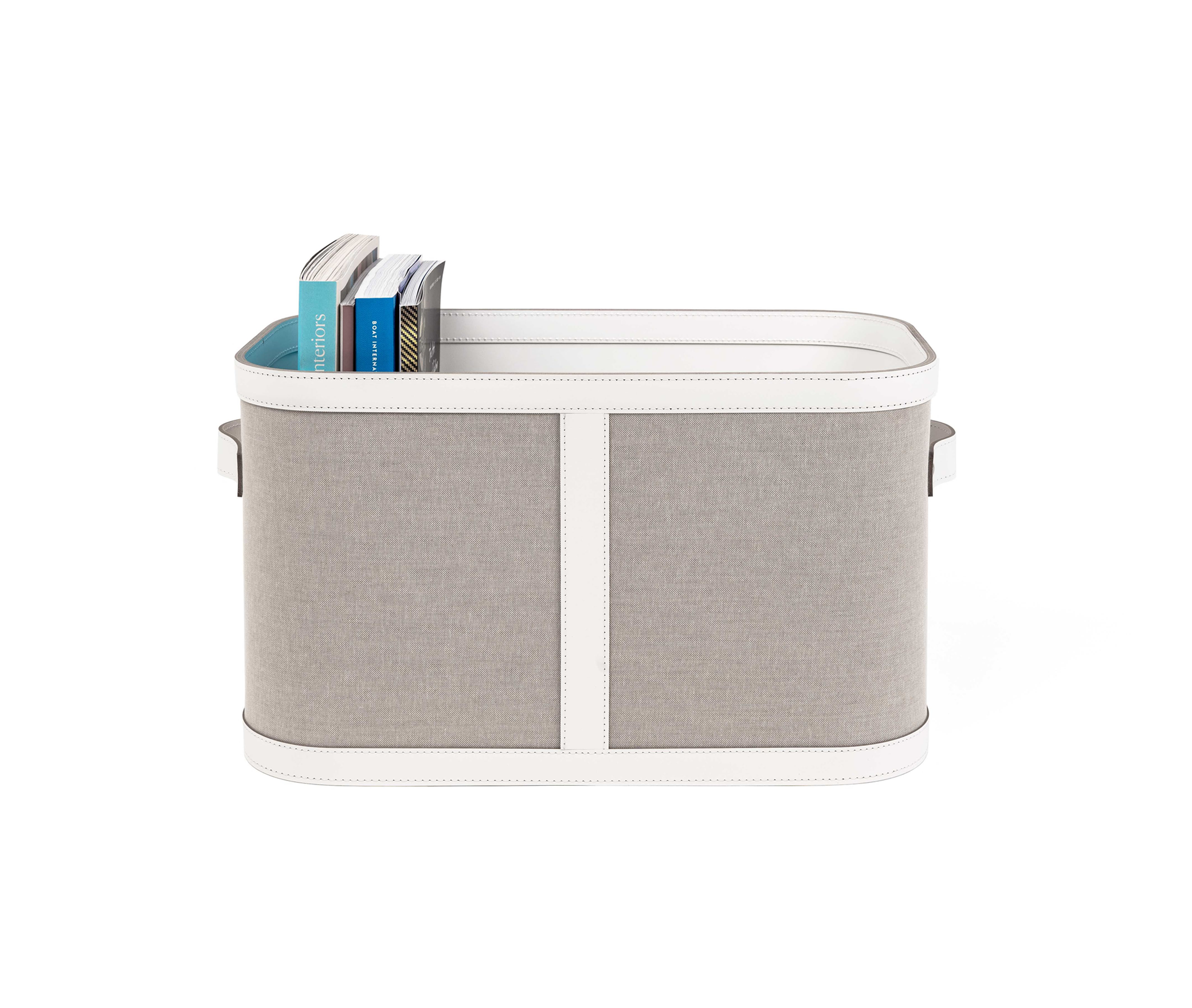 Сочетание хлопка цвета экрю и кожаного канта делает этот аксессуар особенно привлекательным. Две прочные кожаные ручки делают корзину удобной и практичной для хранения — ее можно поставить под консоль или рядом с диваном.