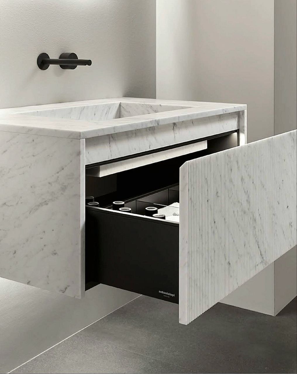 Благодаря модульной системе, раковины могут быть интегрированы в консоли или использоваться как самостоятельные элементы. Чёткая геометрия, отсутствие лишних деталей и природная выразительность мрамора придают изделию статусный и в то же время сдержанный характер.