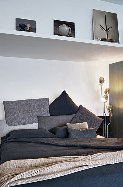 Изголовье кровати Picabia представляет собой динамичную композицию подушек, сочетающую декоративную выразительность и функциональность. Необычные линии конструкции делают эту модель настоящим полем для творческих экспериментов: подушки могут быть выполнены как в едином цвете, так и в контрастных оттенках — выбор комбинации полностью зависит от предпочтений владельца.