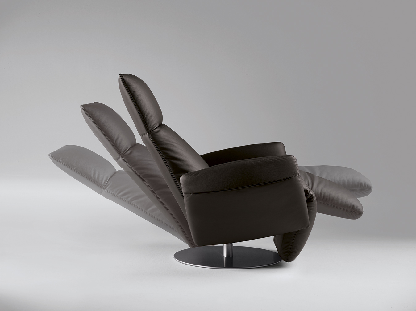 Круглое стальное основание с матово-черной отделкой или лакированным покрытием позволяет вращать кресло на 360°. Наполнитель выполнен из пенополиуретана переменной плотности без фреонов и полиэстеровой ваты. Кресло Pillow доступно в 3 вариантах: с электроприводом и аккумулятором, имеет очень плавный механизм, позволяющий индивидуально регулировать спинку и подставку для ног. Пульт управления скрыт в кармане левого подлокотника. В версии с ручным управлением движения синхронизируются благодаря рычагу, расположенному между левым подлокотником и сиденьем. Угол наклона подголовника можно регулировать вручную независимо от спинки. Обивка кресла Pillow выполнена из кожи Pelle Frau®.