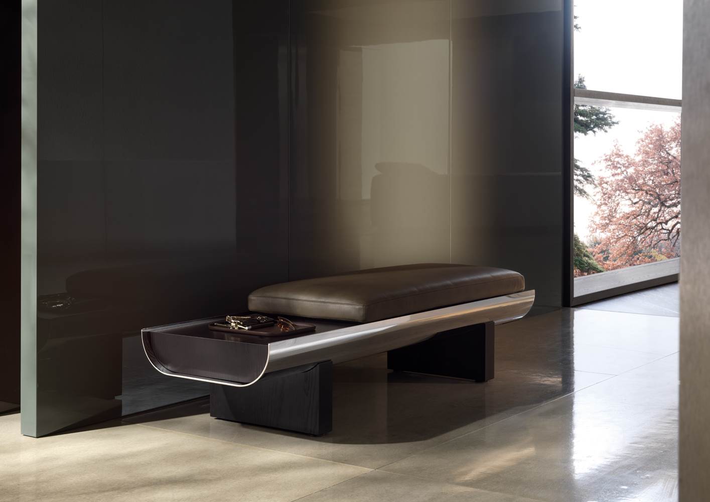 Pilotis — элегантная скамья с минималистским дизайном, вдохновлённая архитектурной идеей «пилонов». Конструкция подчёркивает лёгкость и чистоту линий, а мягкое сиденье визуально «парит» над изящной металлической основой. Доступна в различных вариантах обивки и отделки, включая кожу и ткань.
