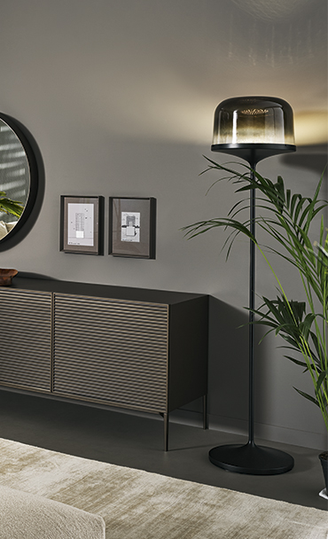 Торшер Pin привлекает внимание своим роскошным абажуром из выдувного стекла, который контрастирует с хрупкой металлической стойкой. Линейность и сдержанность дизайна позволяют торшеру органично вписаться в любой интерьер, где его элегантное присутствие создает мягкое освещение, выделяя ключевые акценты в пространстве. Торшер Pin доступен с абажуром из дымчатого стекла и металлической стойкой цвета свинца, что добавляет ему изысканности и утонченности.