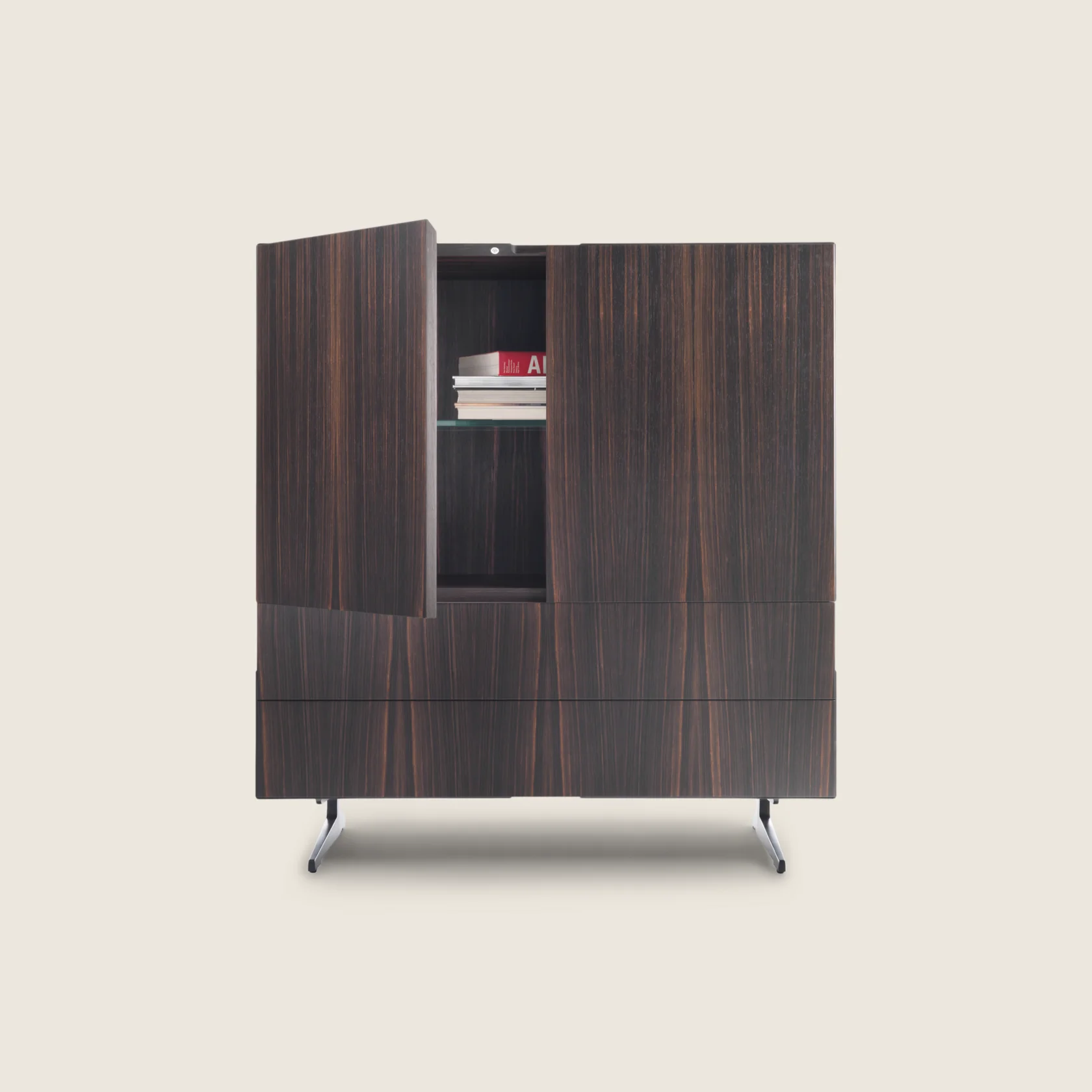 Коллекция Piuma включает различные конфигурации: комоды, тумбы, шкафы и медиа-консоли.