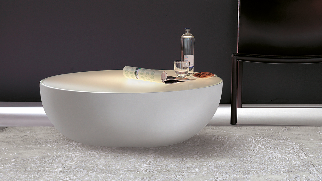 Коллекция Planet — это неоспоримый атрибут современных интерьеров, привлекающий внимание своей эстетичностью и оригинальной полусферической формой. Столики представлены в двух размерах: Planet и Big Planet, а также в версии с мягким светом — Planet light и Big Planet light. У столиков light столешница выполнена из белого стекла acidato, изнутри которого исходит мягкий свет, добавляющий элегантности и современности.