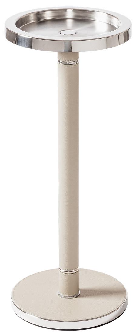 Конструкция из нержавеющей стали с массивным утяжелённым основанием и кожаными вставками.