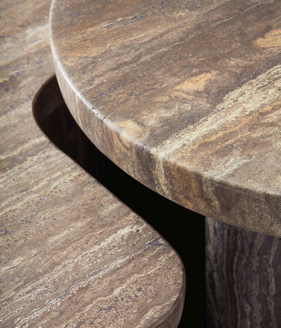 Начиная с диванов, приставные столики Ernest возвращаются к теме модульности и развивают её. Подобно пазлу, журнальные столики можно комбинировать в центре комнаты, чтобы сделать гостиную более динамичной, или использовать по отдельности рядом с диваном Ernest.