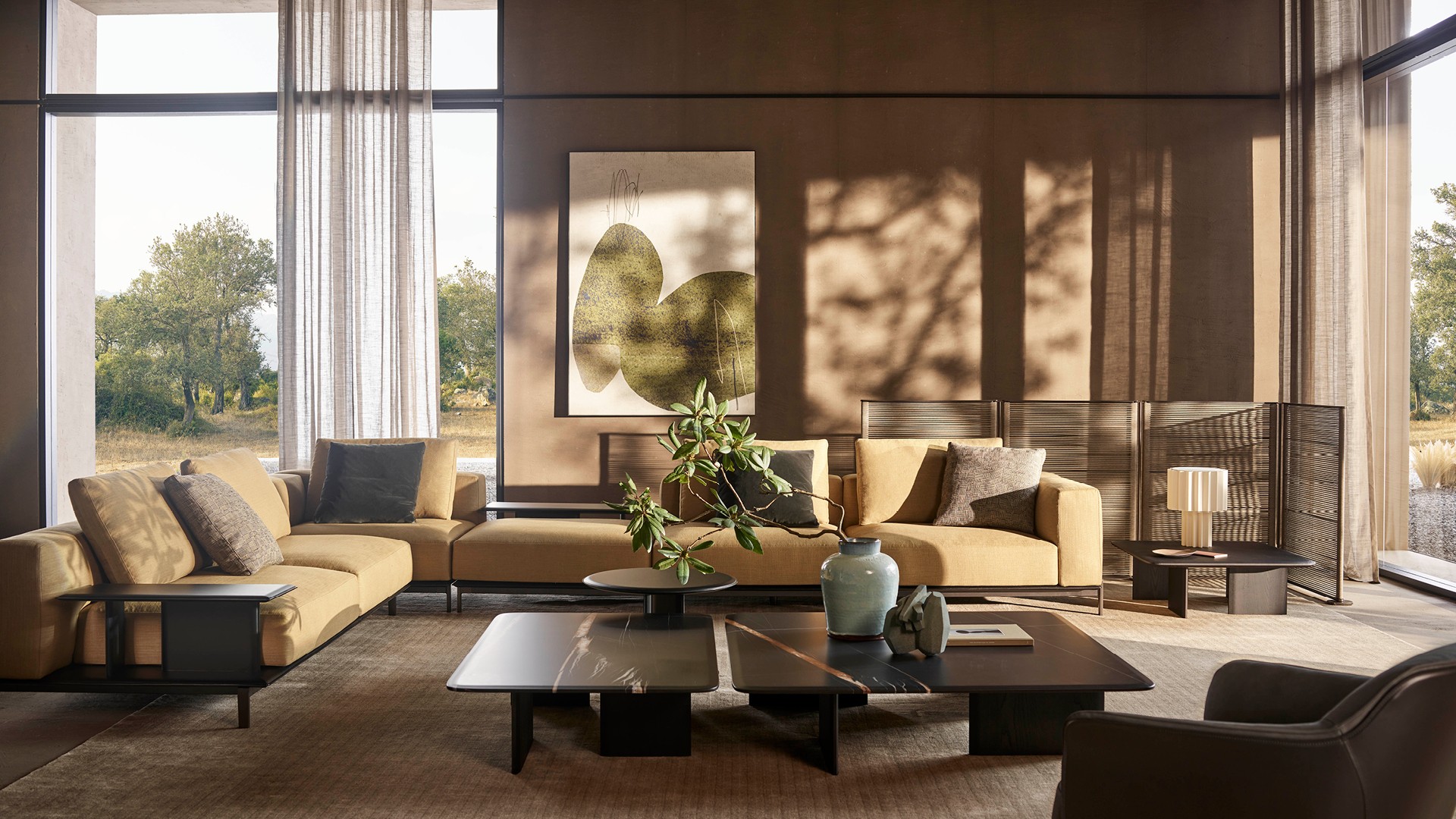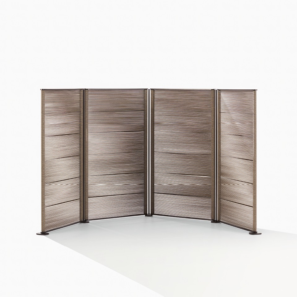 Элегантная, изысканная и чувственная, эта перегородка для комнаты сочетает в себе антикварный и необычайно современный шарм. Несмотря на двухмерность, она способна создавать трехмерное пространство, словно являясь архитектурным элементом. Различная высота позволяет использовать ее по-разному: от простой ширмы для защиты дивана, кровати или уголка домашнего офиса до стены, способной создать интимное отдельное пространство. Перегородка Hima, разработанная Жан-Мари Массо, идеально сочетается с изделиями из новой коллекции, особенно с диваном Brera. Она отличается элегантной отделкой из окрашенного металла и плетеной веревки.