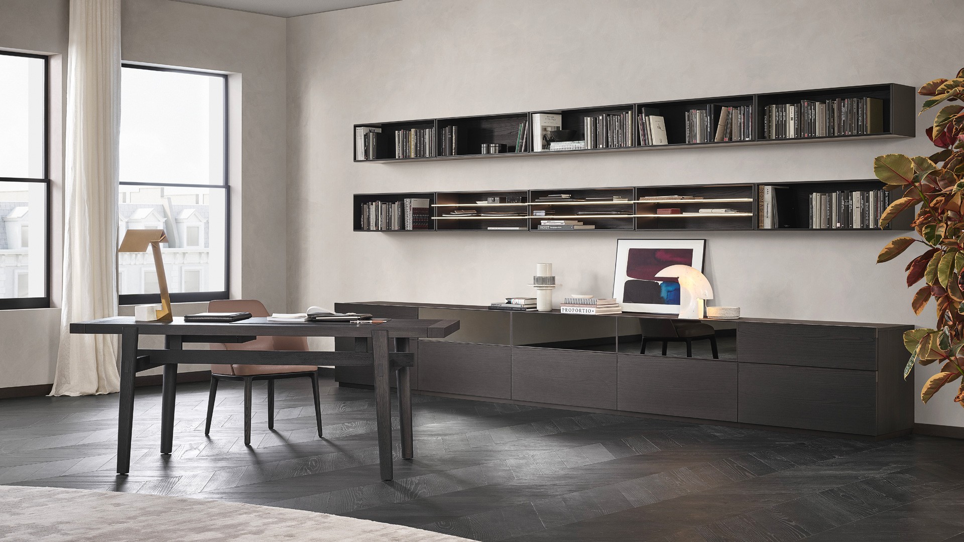 Элегантность и универсальность — общие элементы коллекции Home Hotel, которая переосмысливает современные жилые пространства, ориентируясь на стиль жизни. Прочный и легкий письменный стол доступен с ящиком или без него, а также с кожаной столешницей.