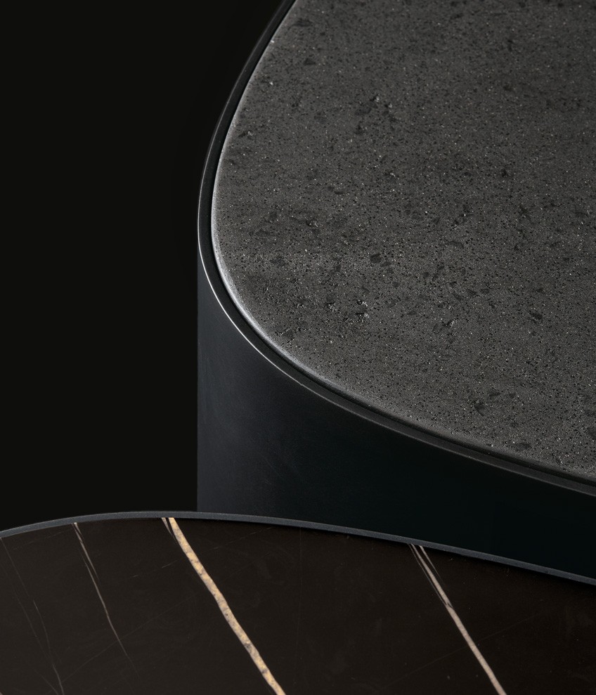 Кофейные столики Koishi вдохновлены мягкими линиями и органическими формами. Само название – Koishi, что в переводе с японского означает «галька» – намекает на естественность, которая также выражается в выборе натуральных материалов, таких как мрамор, камень и дерево. Металлическая конструкция скульптурна, но минималистична; для столешницы используются дерево, стекло и мрамор.